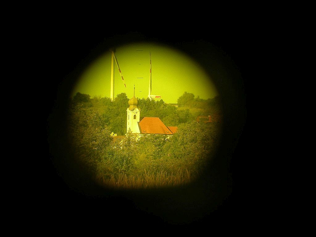 Die Durchsicht mit aufgesteckten Gelbfilter.