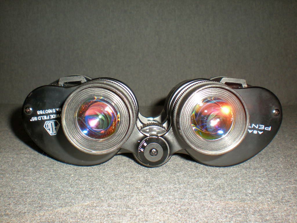 SEHR HOCHWERTIGES, ZIVILES WEITWINKELFERNGLAS mit original Köcher und Riemen! Das japanische Unternehmen Asahi Optical Co. hieß ursprünglich Asahi Anfang der 50-er Jahre wurden eigene Pentax Kameras entwickelt. Einige Der Name "Pentax" wird aus den Bezeichnungen "Pentaprisma" und Dieses Belegstück mit 9,5° Weitwinkelokularen hat ein gewaltiges Sehfeld von Die Kenngröße ist 8x40. 8-fache Vergrößerung mit 40 mm Objektive. Das Logo "AOCO" steht für "Asahi Optikal Co". Die Seriennummer ist 5160788. Die japanische Erzeugung trägt die JB-Nummer JB 21 und stammt von der Bevor japanische Optiken den Herstellerbetrieb verlassen, müssen sie Zum Schutz der Okulare und Objektive verfügt das Fernglas über auf- Die Detailaufnahme der Mitteltriebfokussierung. Die Durchsicht durch das Fernglas. Breite = 19,5 cm, Höhe = 16 cm, Gewicht = 970 g. Der original Lederköcher mit Druckknopfverschluss. Er ist innen mit roten Samt ausgekleidet.