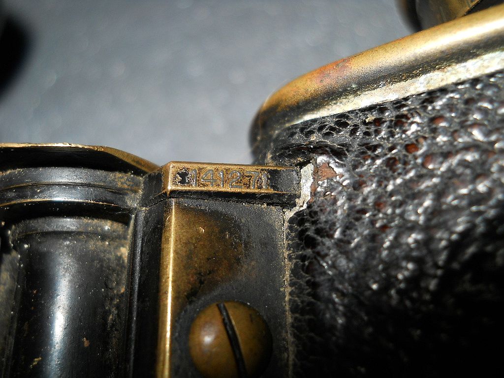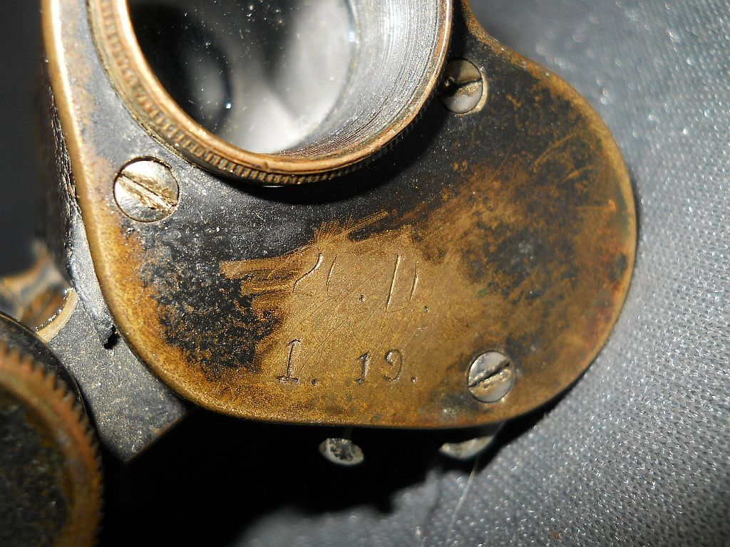 wurde Die Seriennummer ist 141271. Das Dienstglas wurde 1907 hergestellt. Die Augenmuscheln bestehen aus zwei Teilen, wobei der äußere Ring drehbar ist. Das Fernglas ist 11 cm hoch, 12 cm breit und wiegt 500 g. Sehr selten ist die eckige Ausführung vom original Lederköcher.