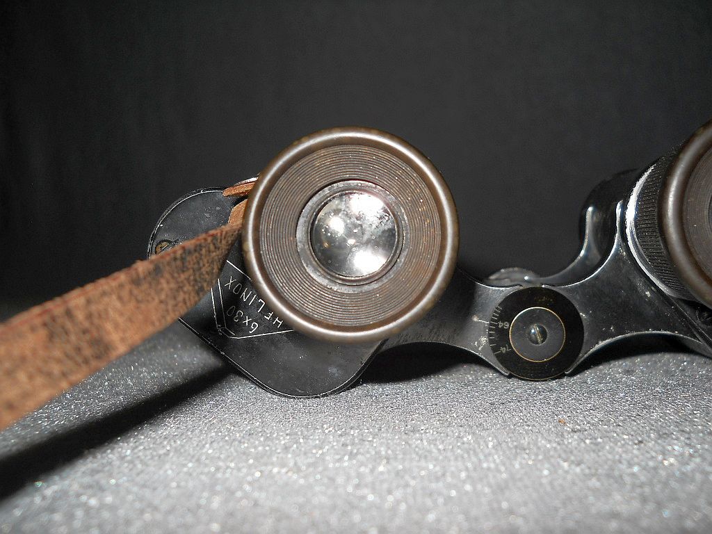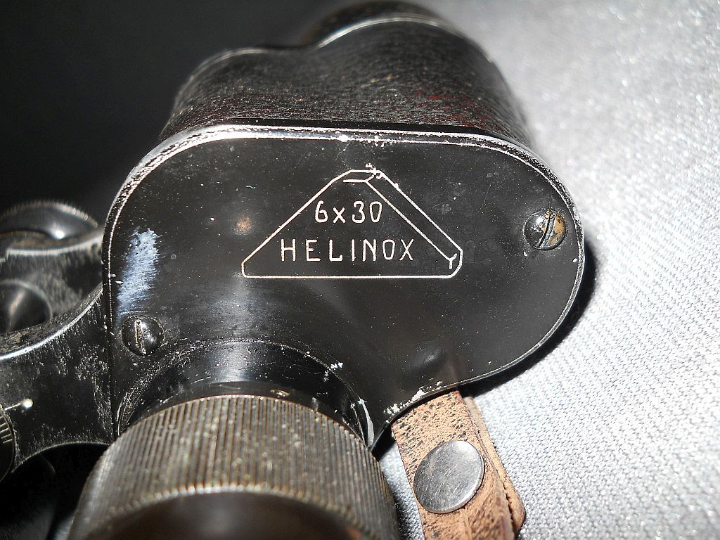 und ist mit Weitwinkel- Die Kenngröße ist 6x30. 6-fache Vergrößerung mit 30 mm Objektive. Der Modellname ist Helinox. Die Seriennummer 523917. Das Fernglas wurde 1919 hergestellt.