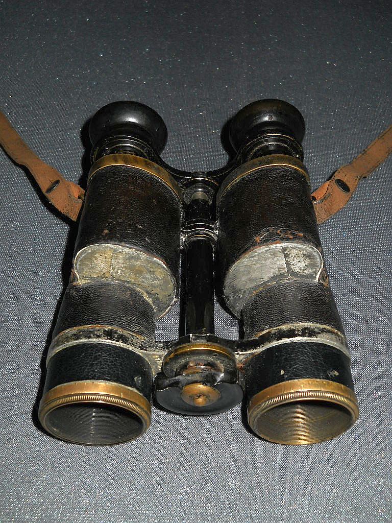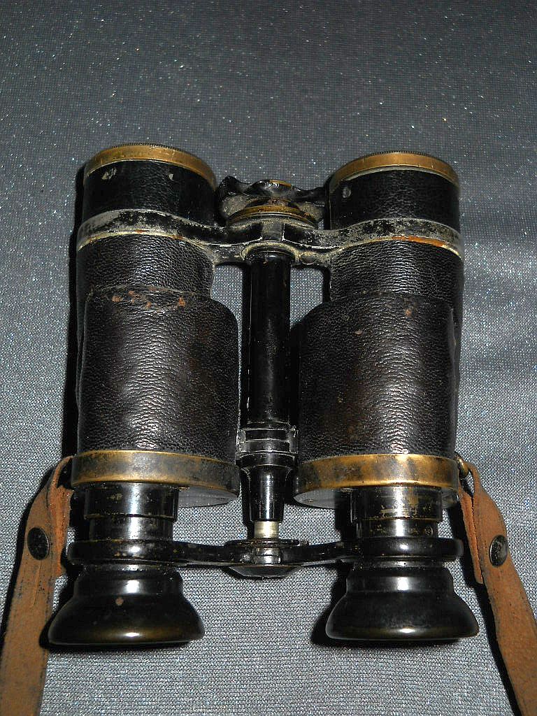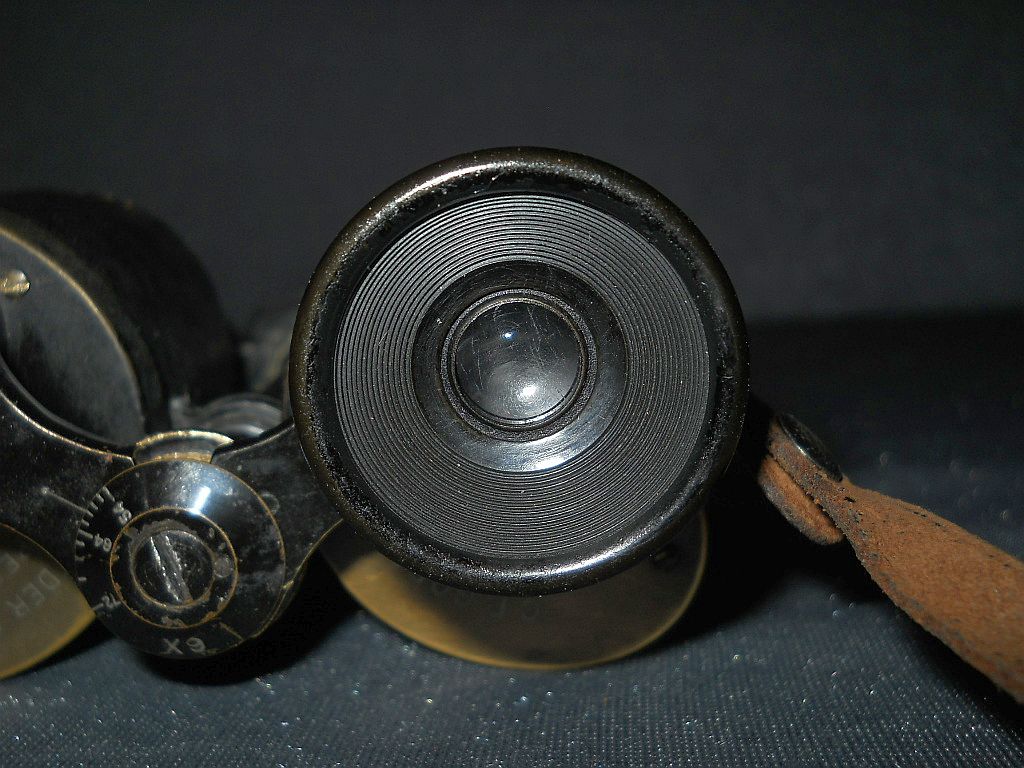 Messingdeckeln befindet Die Kenngröße ist 6x32. 6-fache Vergrößerung mit 32 mm Objektive. Angeschraubte Riemenösen. Die Seriennummer ist 112782. Das Fernglas wurde 1905/06 hergestellt. Das Fernglas ist 13 cm hoch, 11 cm breit und wiegt 700 g.