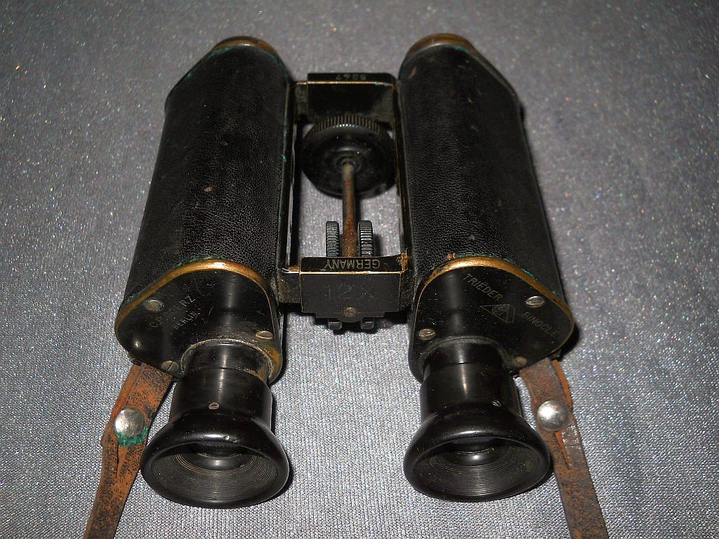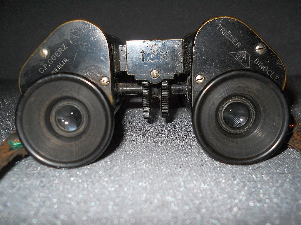 Die Kenngröße ist 12x20. 12-fache Vergrößerung mit 20 mm Objektive. Trieder Binocle mit dem frühen Goerz-Logo. Ein Prisma mit