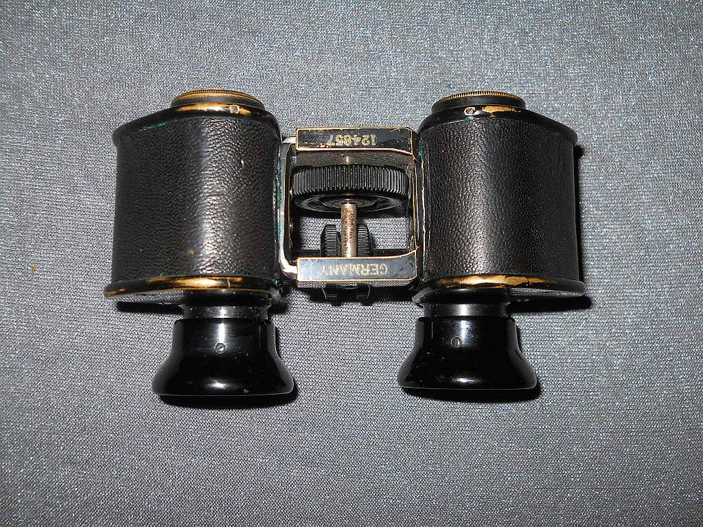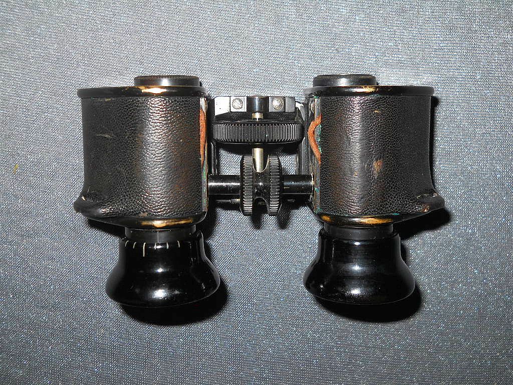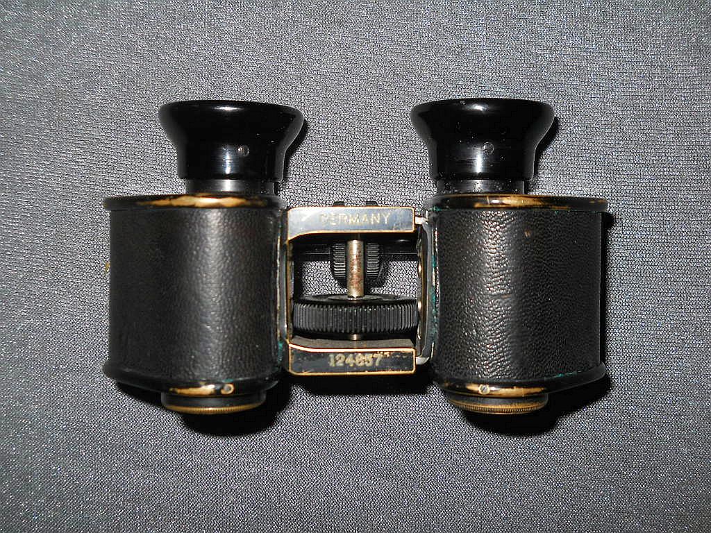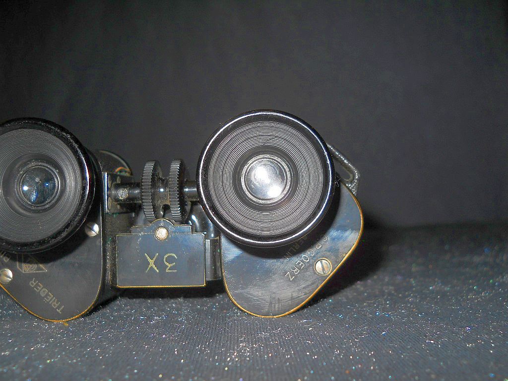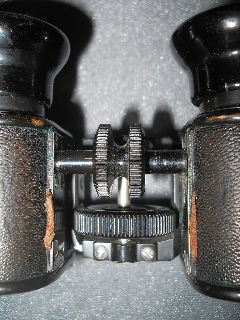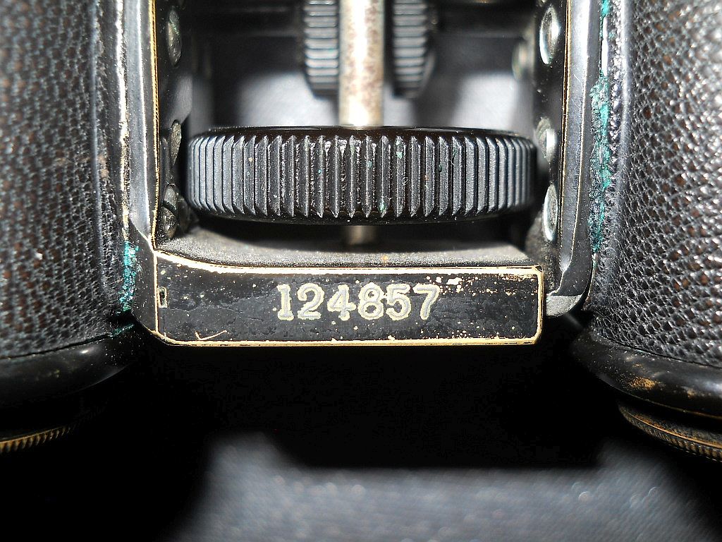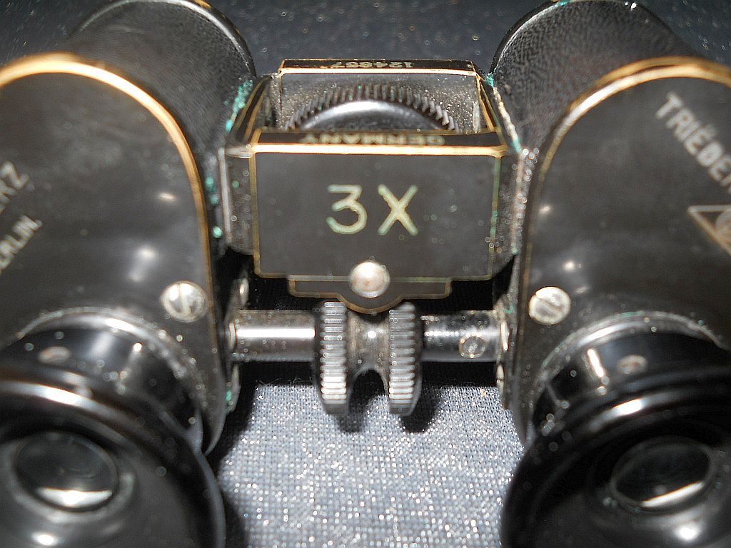 den verschlungenen In der Mitte befindet sich die Vergrößerungsangabe 3x. Die Seriennummer ist 124857. Das Fernglas wurde 1906 hergestellt. Das Kurzlogo von Goerz. Es hat eine einzigartige Konstruktion der Fokussierung und