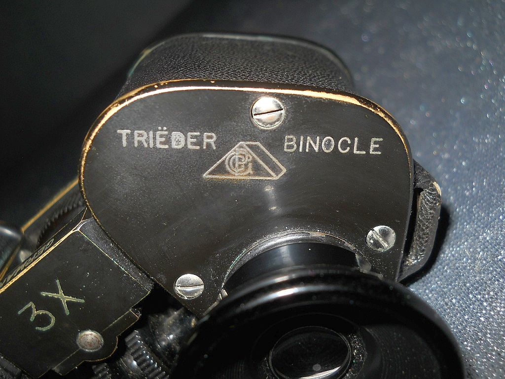 eine Innenfokussier- Die Kenngröße ist 3x14. 3-fache Vergrößerung mit 14 mm Objektive. Trieder Binocle mit dem frühen Goerz-Logo. Ein Prisma mit