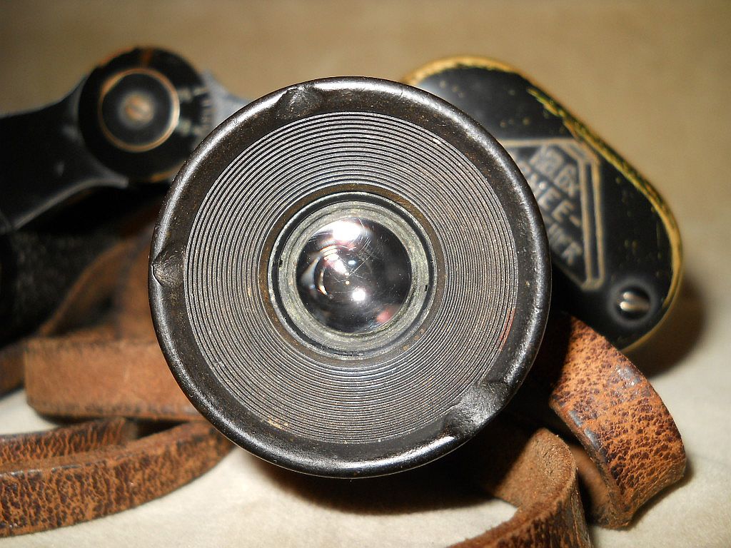 6-fache Vergrößerung mit 30 mm Objektiv. Die Der Name M8 ist bedeutend für Modell 8, dem Jahr der Einführung in 1908. Das Fernglas ist 10 cm hoch, 15 cm breit und wiegt 500 g.
