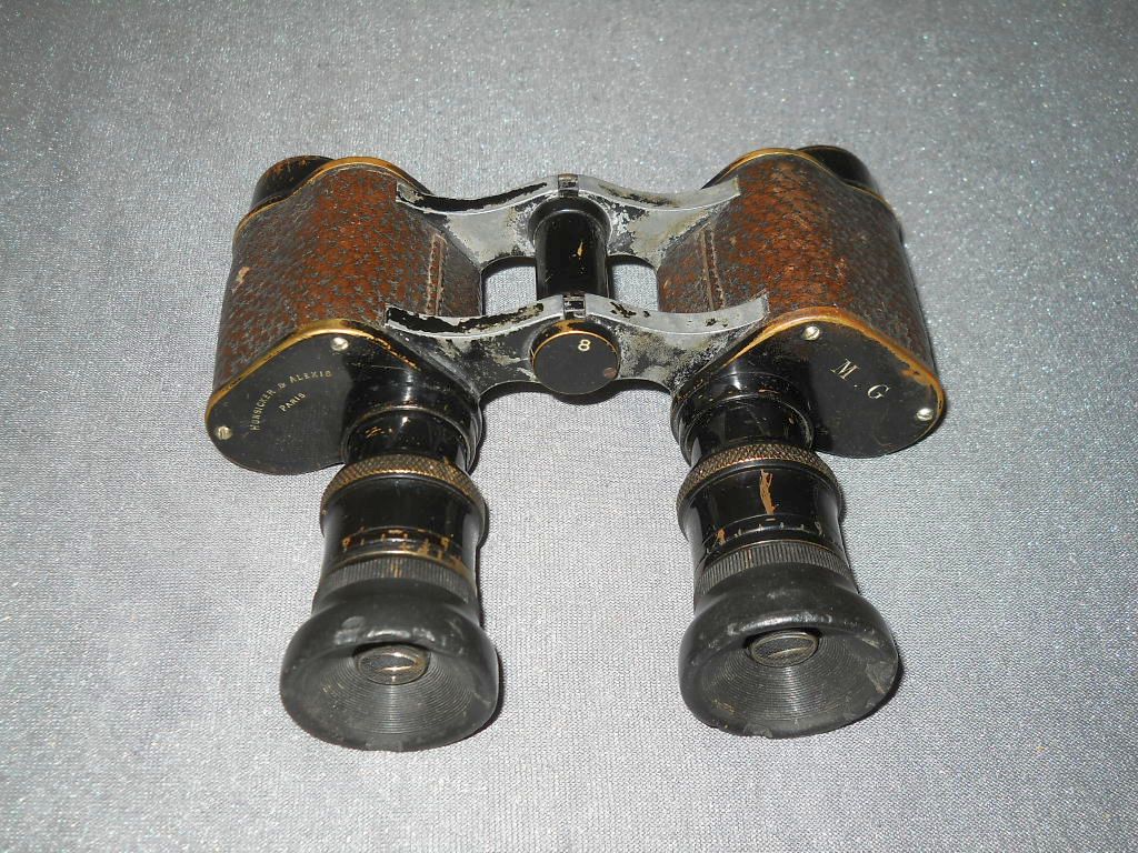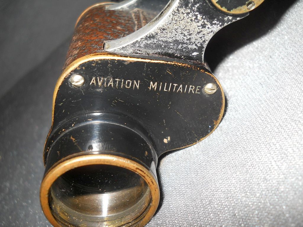 und Im WK I wurden Ferngläser an die französische Armee, als auch an die Dieses Belegstück mit Kennzeichnung vom Kriegsministerium (M.G.) ist Die Kenngröße ist 8x26. 8-fache Vergrößerung mit 26 mm Objektive. M.G. = Ministre de la Guerre - heißt übersetzt Kriegsministerium. Aviation Militaire = militärische Luftfahrt. Die Seriennummer ist 829. Die spezielle Okularkonstruktion in der Ausführung mit "Geradeführung der Die Durchsicht durch das Fernglas. Breite = 16 cm, Höhe = 14 cm, Gewicht = 665 g.