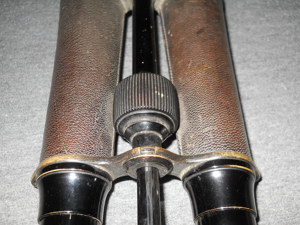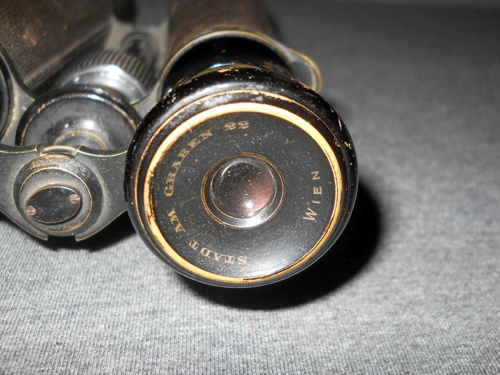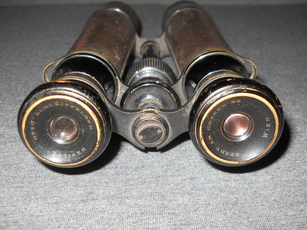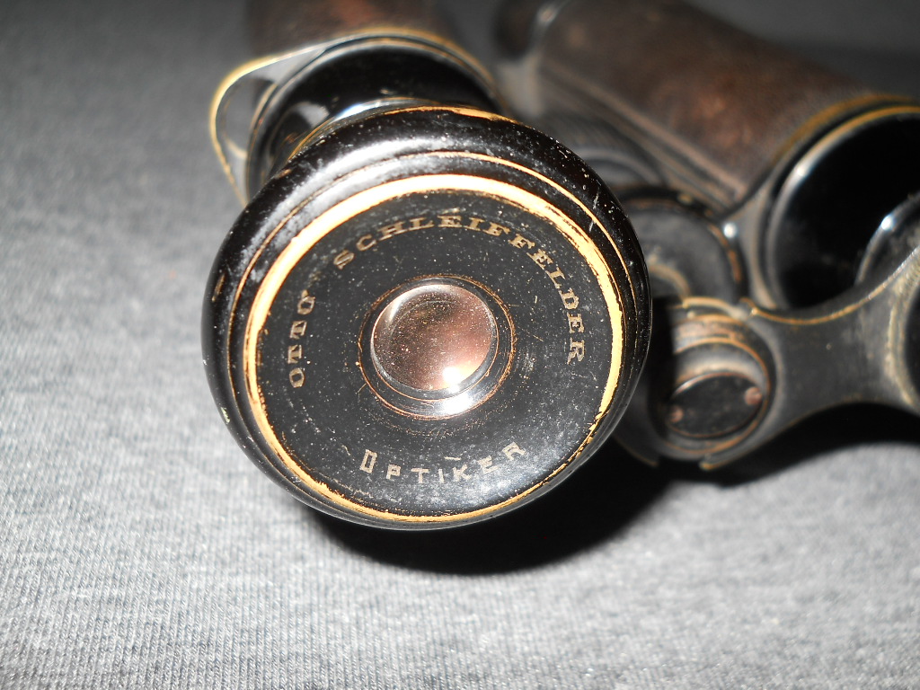 SEHR SELTENES, TERRESTRISCHES UM 1900 mit Schnellzug, ausziehbaren Sonnenblenden und Lederköcher! Der Optiker Otto Schleiffelder gründete 1881 ein Optikergschäft in Wien, Schleiffelder war kein Erzeugerbetrieb, er vertrieb optische, physikalische, Um die Jahrhundertwende erzeugten viele Optikhersteller diese terrestrischen Dieses Belegstück ist in der Entwicklung bereits sehr fortgeschritten. Es Die linke Augenmuschel ist mit dem Vertreiber, "Optiker Otto Schleiffelder" An der rechten Augenmuschel befindet sich die Angabe der Adresse in Wien. Das Fernglas verfügt über einen sogenannten "Schnellzug". Man hält das Danach erfolgt die Feinjustierung mit der Rändelschraube vom Mitteltrieb. Die Riemenöse ist mit der Brücke integriert. Das Fernglas hat ausziehbare Sonnenblenden. Die Durchsicht durch das Fernglas mit ca. 8-facher Vergrößerung Breite = 11 cm, Länge zusammengefaltet = 22 cm, Länge ausgezogen = 33 cm Der Lederköcher ist nicht original.
