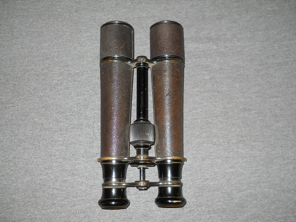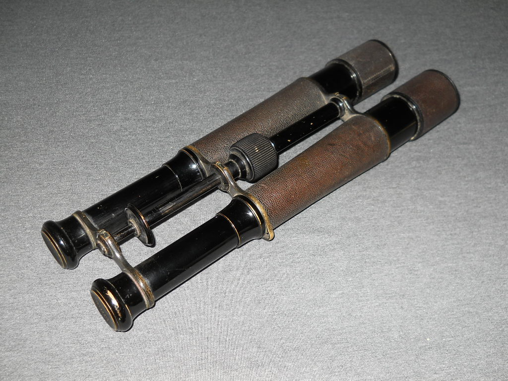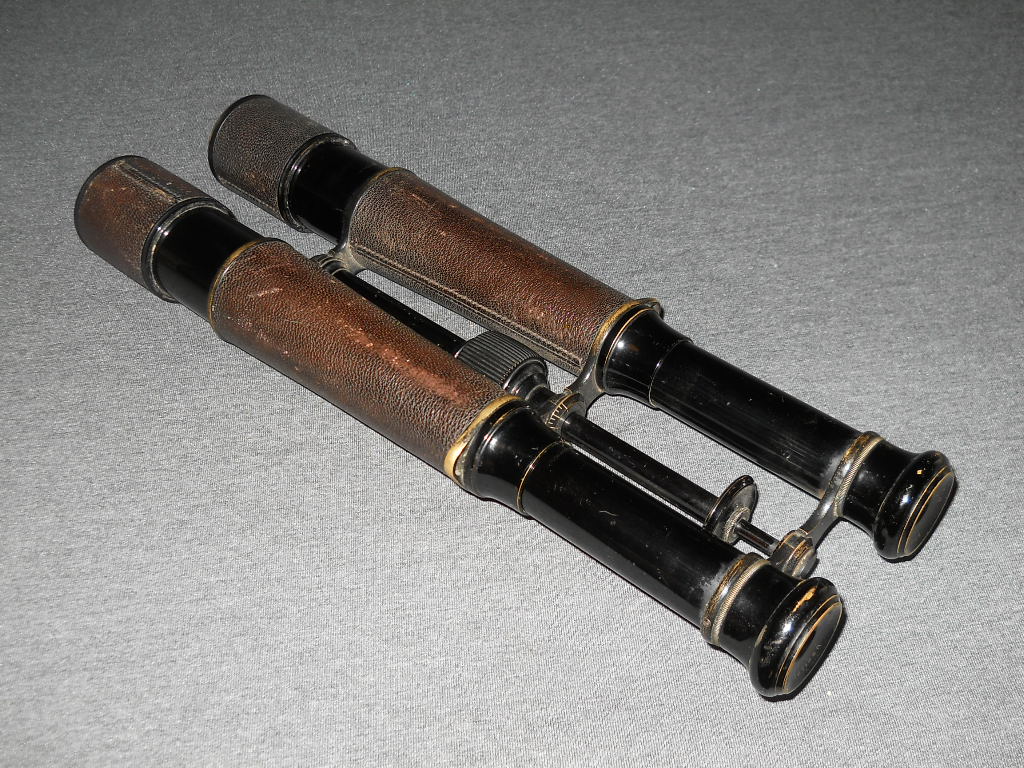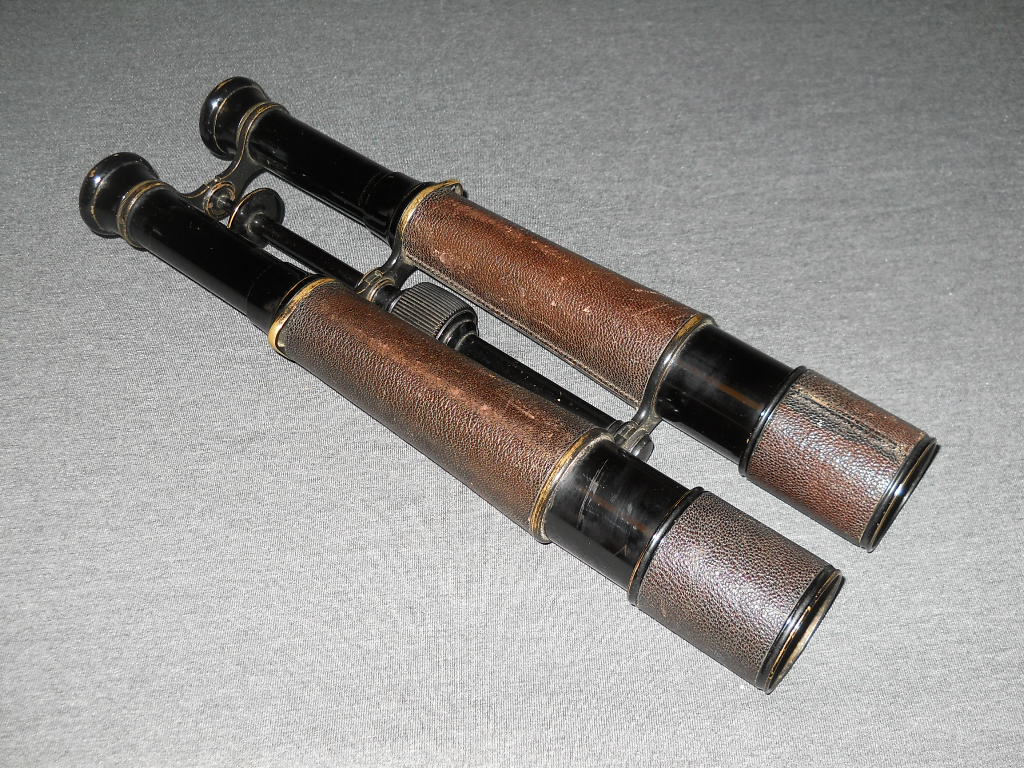 SEHR SELTENES, TERRESTRISCHES UM 1900 mit Schnellzug, ausziehbaren Sonnenblenden und Lederköcher! Der Optiker Otto Schleiffelder gründete 1881 ein Optikergschäft in Wien, Schleiffelder war kein Erzeugerbetrieb, er vertrieb optische, physikalische, Um die Jahrhundertwende erzeugten viele Optikhersteller diese terrestrischen Dieses Belegstück ist in der Entwicklung bereits sehr fortgeschritten. Es Die linke Augenmuschel ist mit dem Vertreiber, "Optiker Otto Schleiffelder" An der rechten Augenmuschel befindet sich die Angabe der Adresse in Wien. Das Fernglas verfügt über einen sogenannten "Schnellzug". Man hält das Danach erfolgt die Feinjustierung mit der Rändelschraube vom Mitteltrieb. Die Riemenöse ist mit der Brücke integriert. Das Fernglas hat ausziehbare Sonnenblenden. Die Durchsicht durch das Fernglas mit ca. 8-facher Vergrößerung Breite = 11 cm, Länge zusammengefaltet = 22 cm, Länge ausgezogen = 33 cm Der Lederköcher ist nicht original.