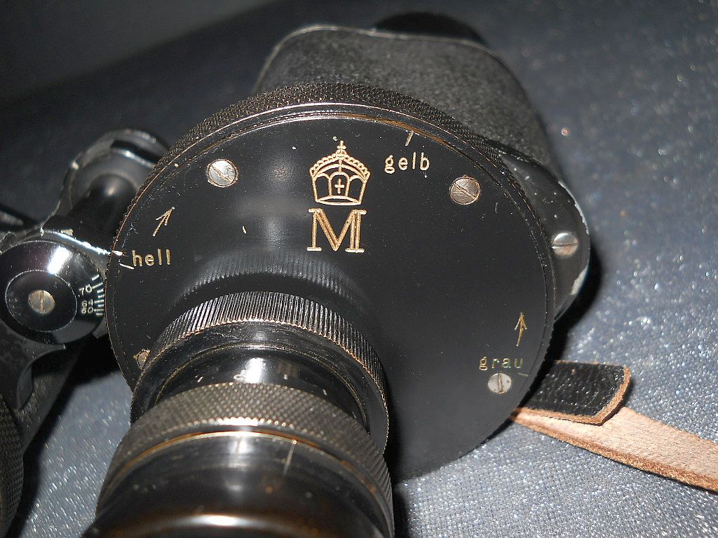Objektive. Die Serien- Der Abnahmestempel der kaiserlichen Marine im WK I. An den Okularen sind beidseitig zwei 6,5 cm große