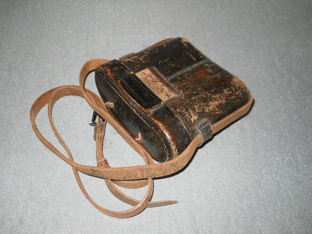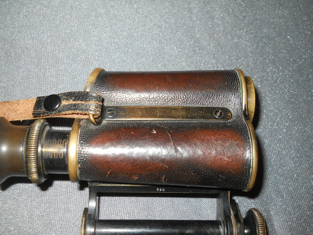 SAMMLERHIGHLIGHT! MIT KLEMMRING-OKULARE UND "BENT SHOULDERS"! mit original Lederköcher und Riemen!