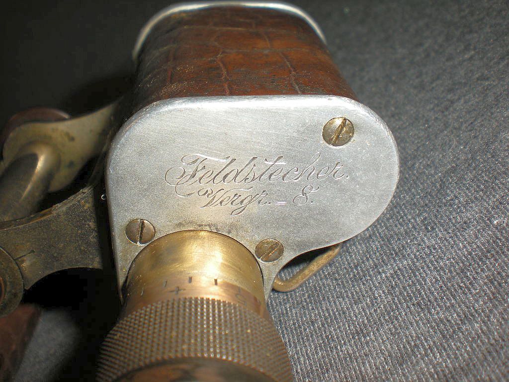 Qualität! Die Kenngröße ist 8x20. 8-fache Vergrößerung mit 20 mm Objektive. Es hat blanke Aluminiumdeckel mit eingeschnittener Schreibschrift ohne Die Seriennummer ist 33545. Der 8-fach Feldstecher wurde ab 1896