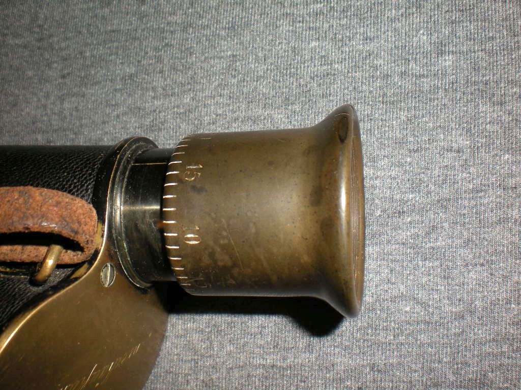 Die Augenmuschel ist in der ältesten Ausführung, 3/3 glatt mit Finderteilung.