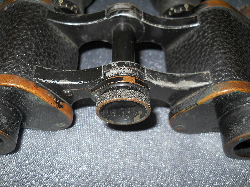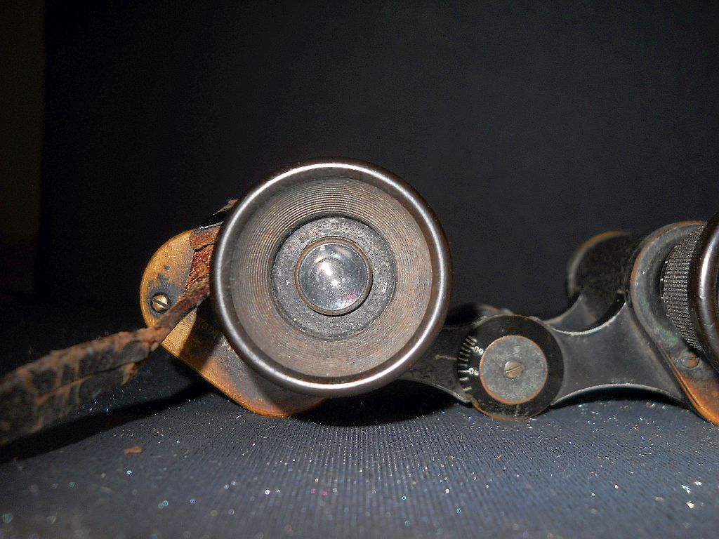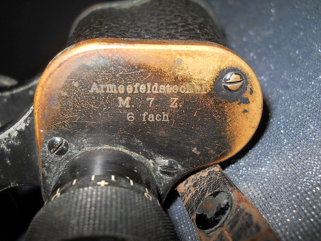 Objektive. Die ersten Armeefeldstecher M.7 Z. = Modell 1907 Zeiss. Die militärische Randnummer 1162467 ist zugleich die