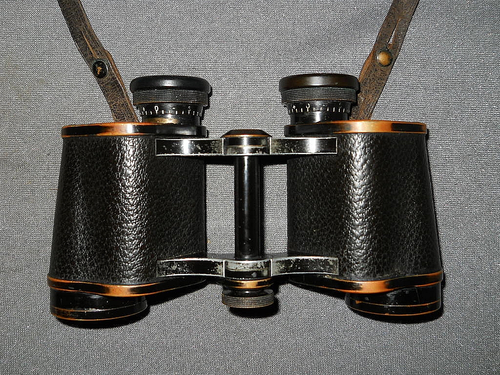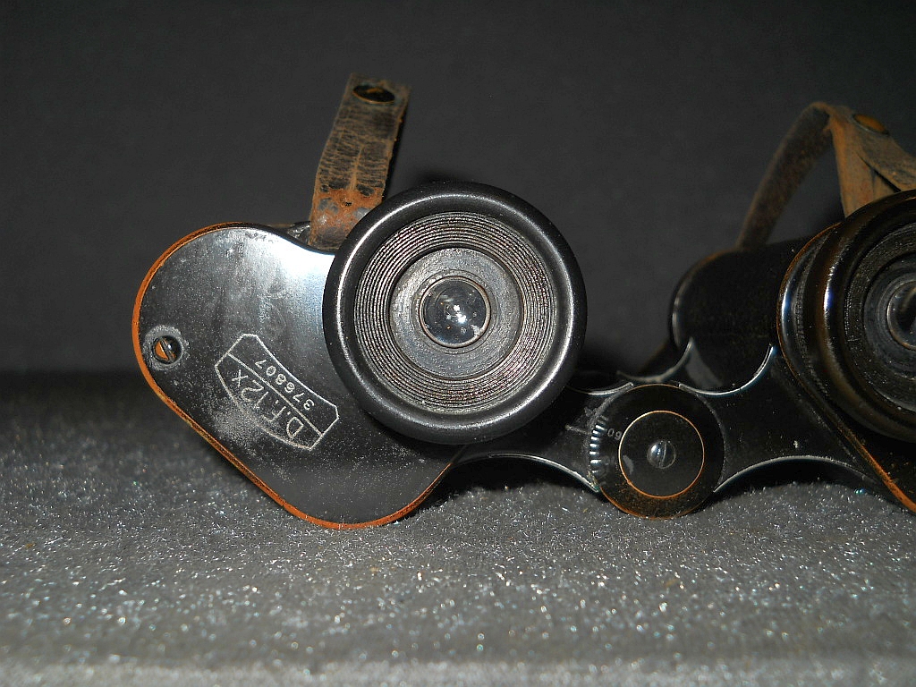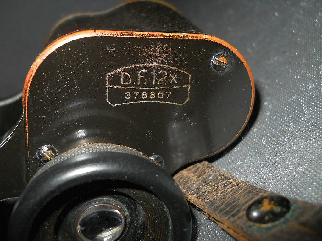 ein wichtiges Die Kenngröße ist 12x30. 12-fache Vergrößerung mit 30 mm Objektive. D.F. steht für Doppelfernrohr. Die Seriennummer ist 376807.