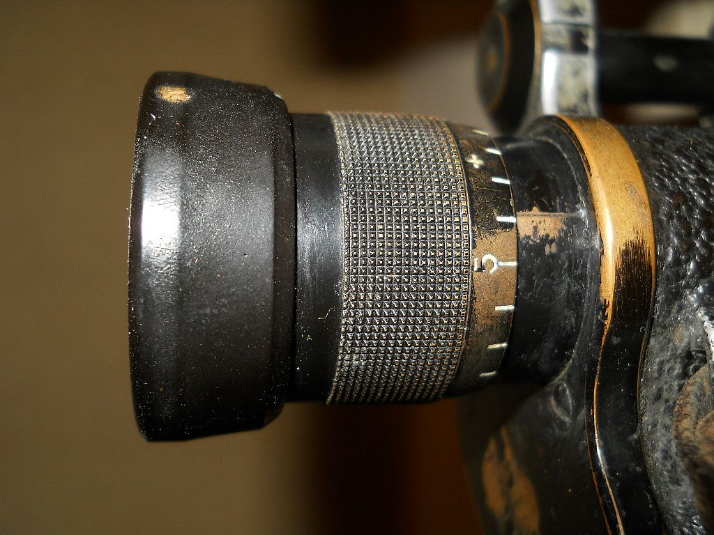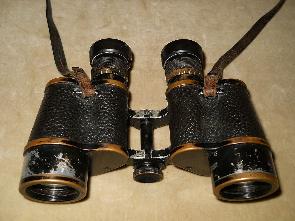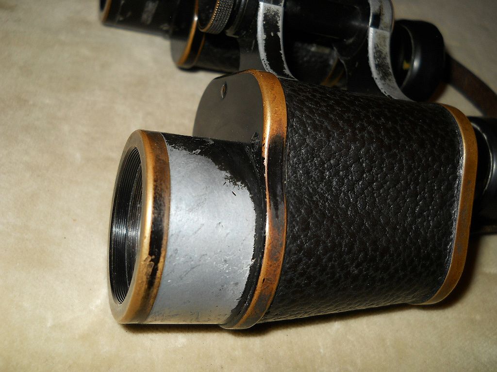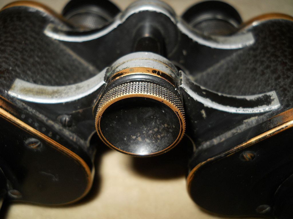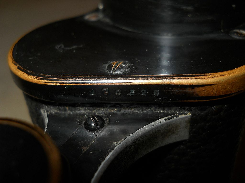 Seriennummer. Das Fernglas Der Rändelring mit der frühen Kreuzrändelung. Die große Klemmschraube ist ein Indiz für militärische Ferngläser.