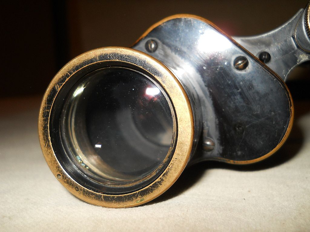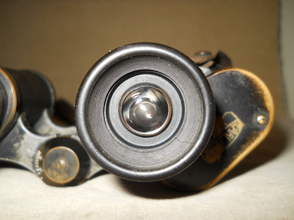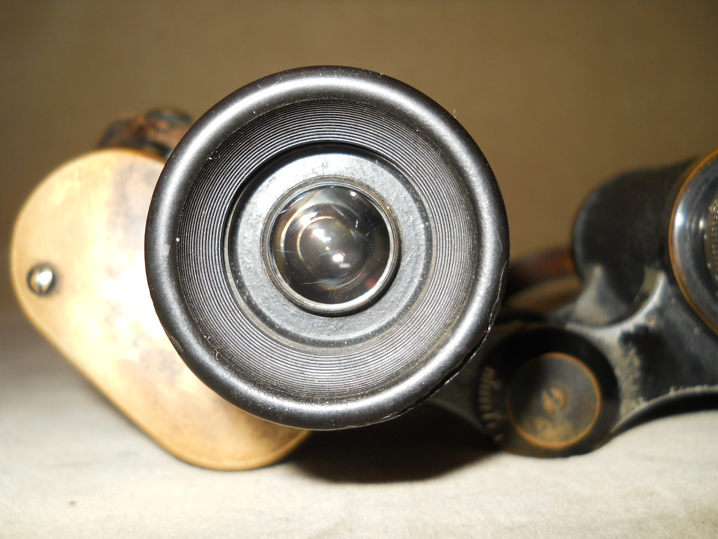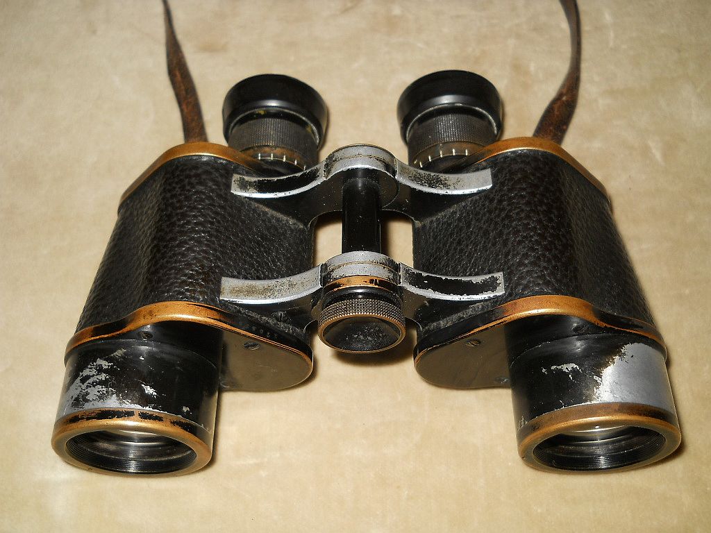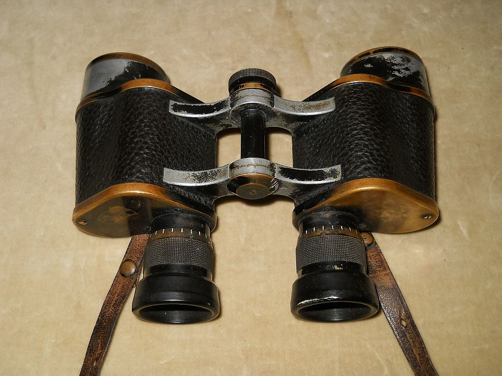 Seriennummer. Das Fernglas Der Rändelring mit der frühen Kreuzrändelung. Die große Klemmschraube ist ein Indiz für militärische Ferngläser.