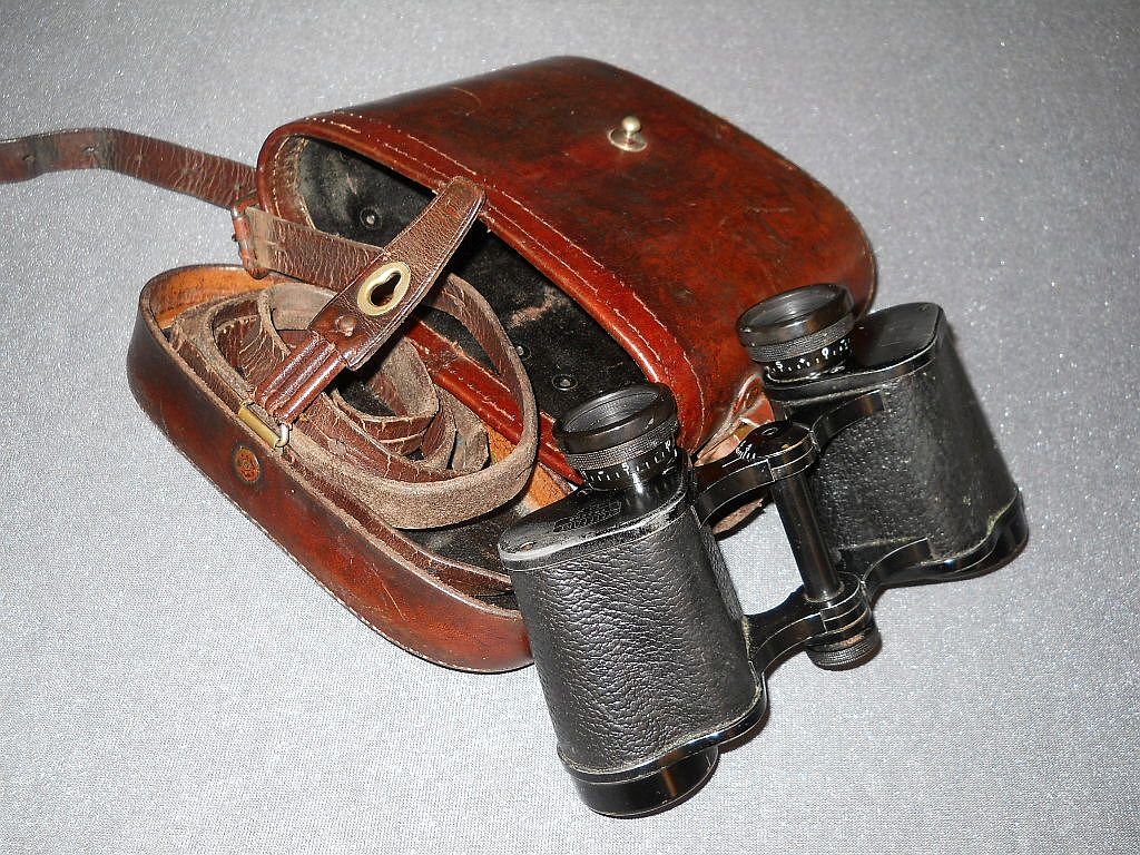 Diese wurde bei Zeiss Jena Die Objektive sind in der Ausführung mit Rundkappen. Die große Klemmschraube - ein Detail für Militärferngläser. Die Durchsicht durch das Fernglas. Das Fernglas ist nur 95 mm hoch und wiegt 580 g. Der original militärische Lederköcher. Auf dem Deckel befindet sich eine K.u.K. Abnahme Prägung von 1915.