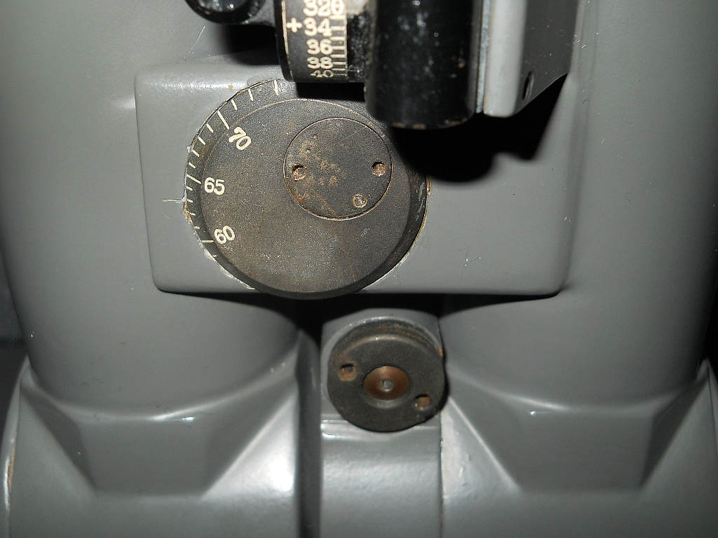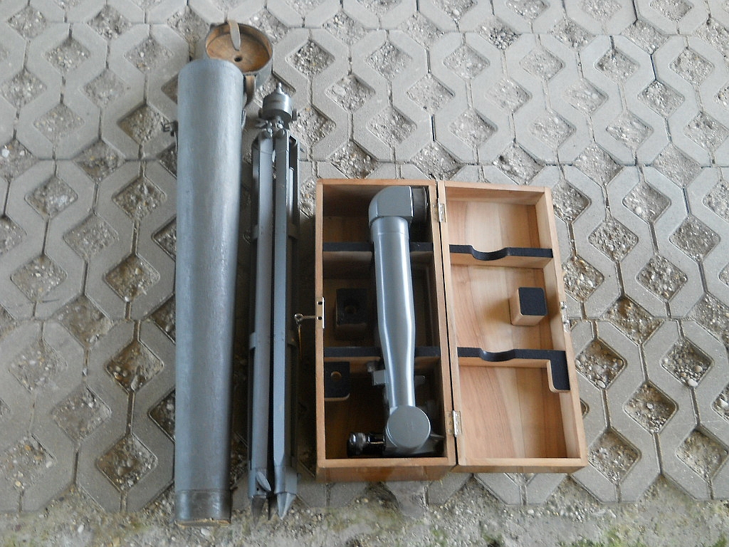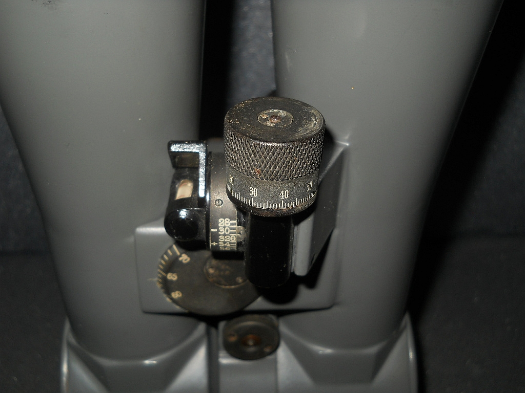 mit dem Sichtfenster Die Geländemesswinkelvorrichtung für artilleristische Berechnungen. Oberhalb Dieser Hebel verbindet zwei Funktionen. Zum Einen ist durch