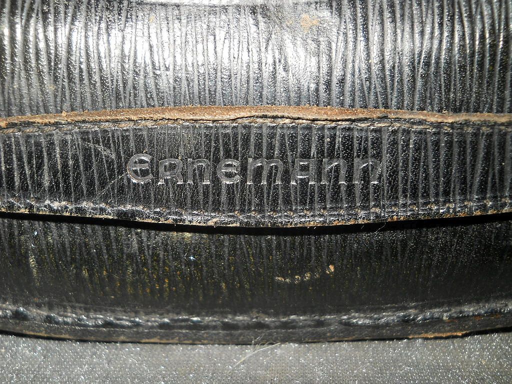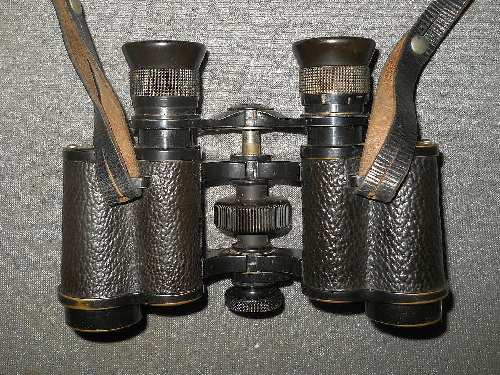 Ausführung mit Das Okular ist mit Kreuzrändelung. Die Klemmschraube zum Fixieren vom Augenabstand. Die Durchsicht durch das Fernglas. Breite = 15,5 cm, Höhe = 11 cm, Gewicht = 600 g. Der original Lederköcher mit Riemen. An der Trageschlaufe am Deckel mit der Firmenprägung "Ernemann". Der Köcher ist innen mit schwarzen Samt ausgelegt.