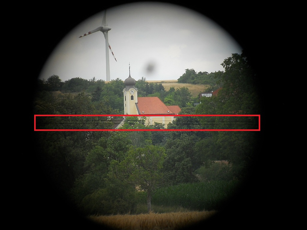 den stehenden Die Durchsicht mit eng stehenden Doppelfaden. Die Durchsicht mit weit stehenden Doppelfaden. Die Klemmschraube zum Fixieren der Augenweiteneinstellung. Das Fernglas ist 14cm hoch, 12 cm breit und wiegt 650 g. Der original zugehörige Lederköcher.