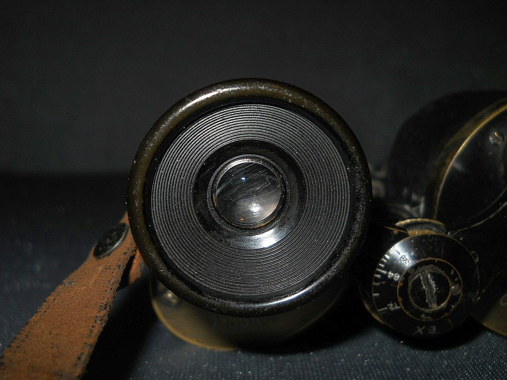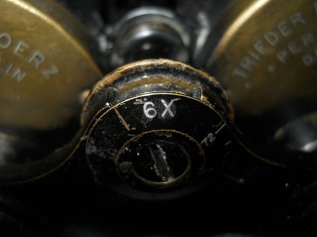 Messingdeckeln befindet Die Kenngröße ist 6x32. 6-fache Vergrößerung mit 32 mm Objektive. Angeschraubte Riemenösen. Die Seriennummer ist 112782. Das Fernglas wurde 1905/06 hergestellt. Das Fernglas ist 13 cm hoch, 11 cm breit und wiegt 700 g.