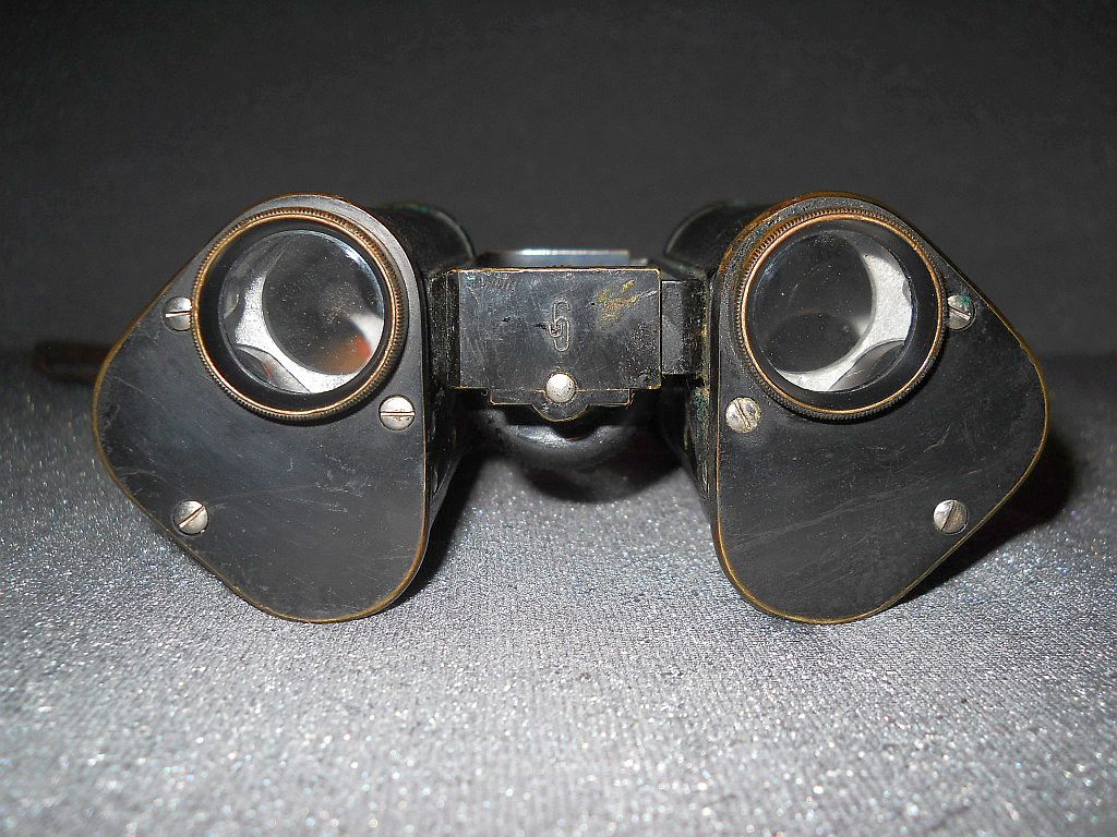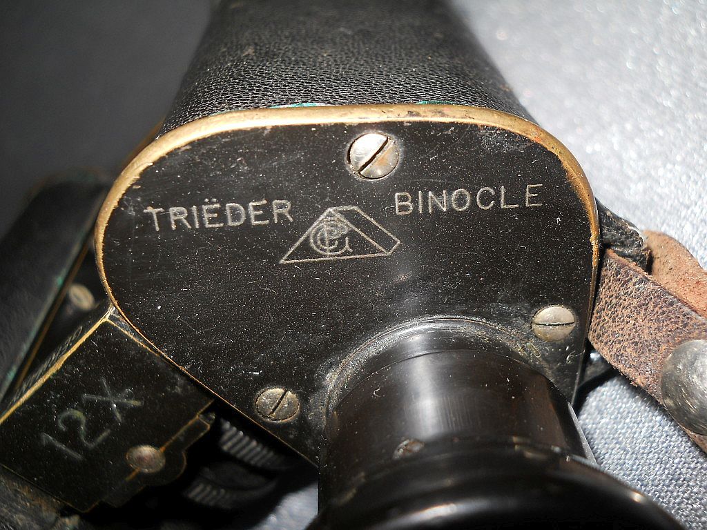 Die Kenngröße ist 12x20. 12-fache Vergrößerung mit 20 mm Objektive. Trieder Binocle mit dem frühen Goerz-Logo. Ein Prisma mit