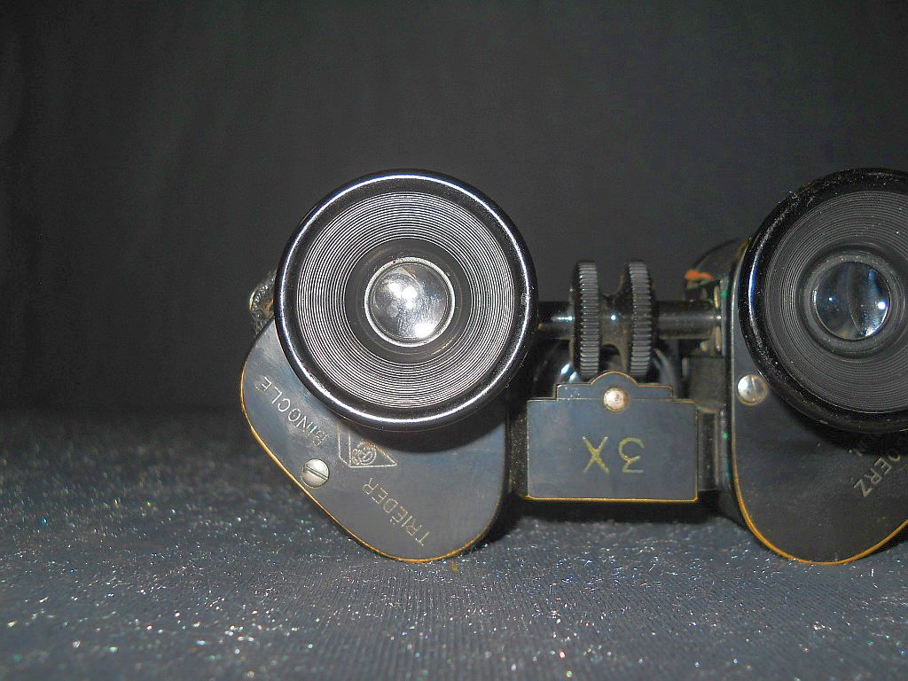 eine Innenfokussier- Die Kenngröße ist 3x14. 3-fache Vergrößerung mit 14 mm Objektive. Trieder Binocle mit dem frühen Goerz-Logo. Ein Prisma mit