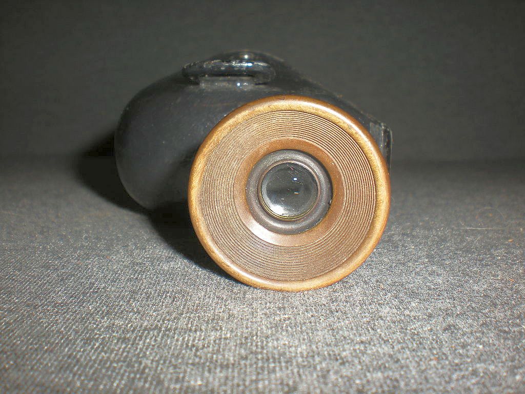 Der Objektivrändelring aus Messing ist samt dem innenliegenden Prismen-