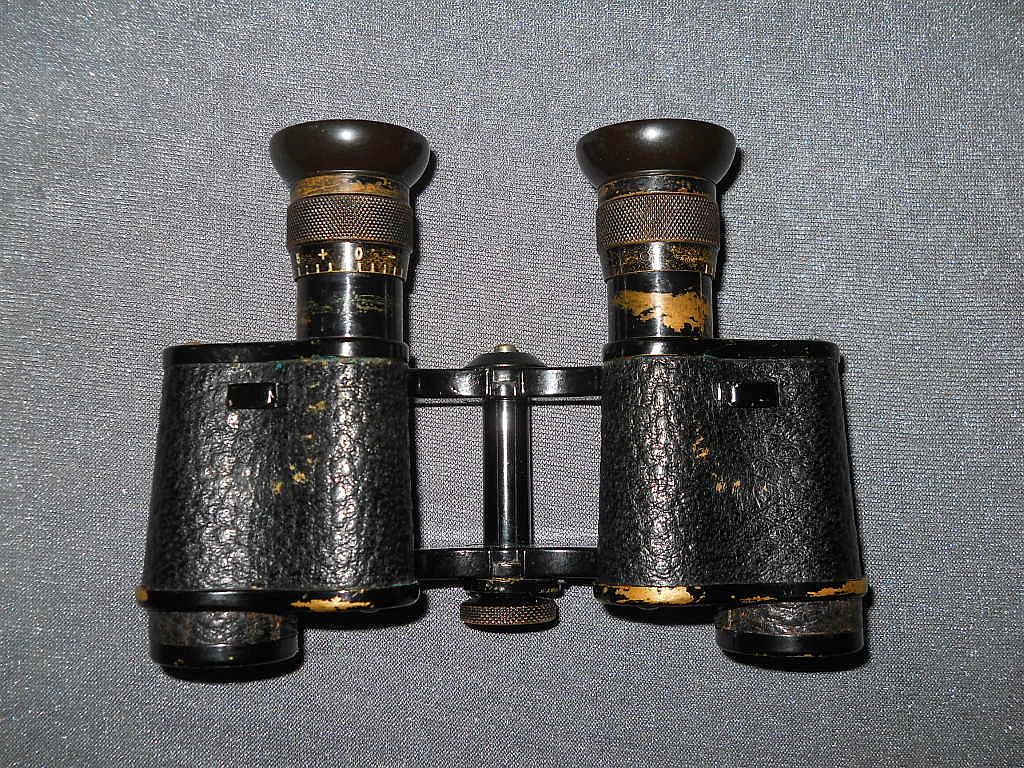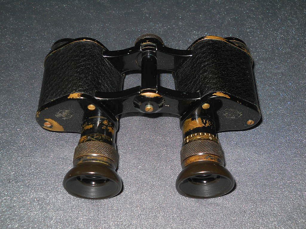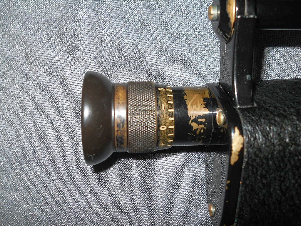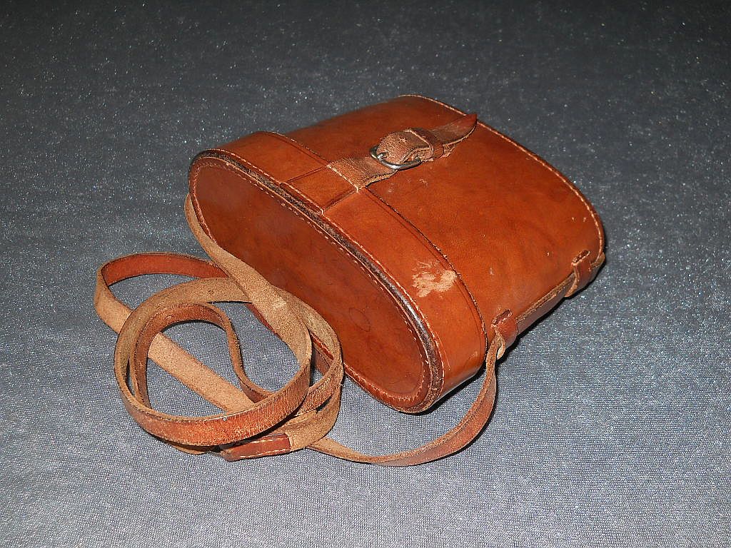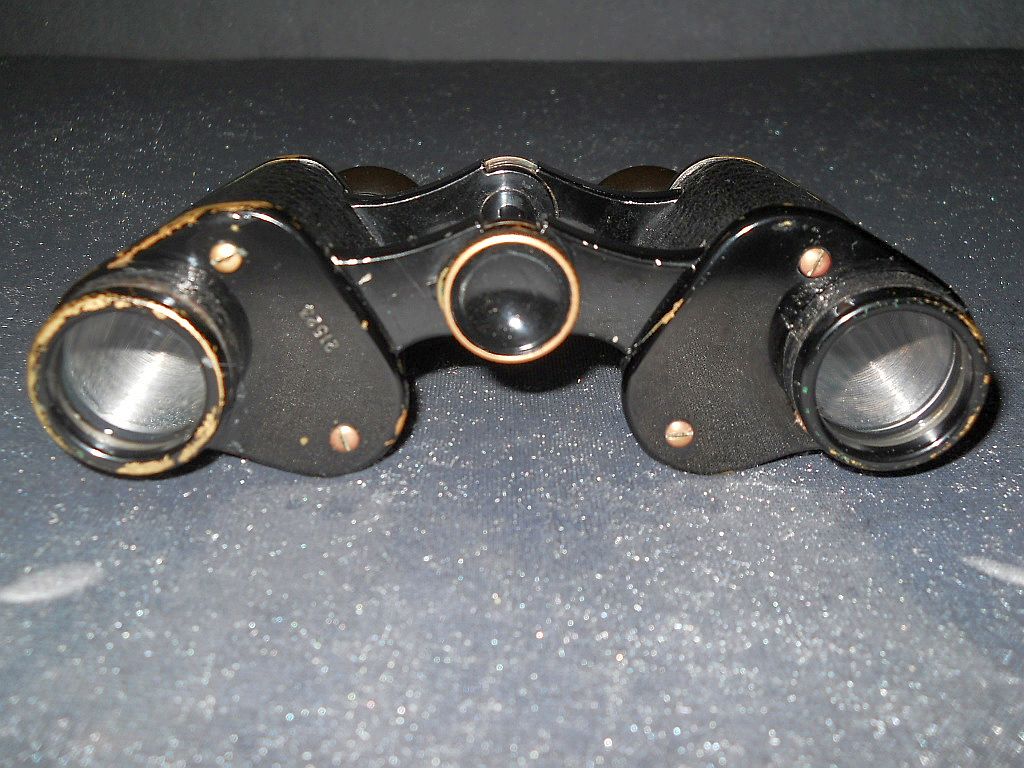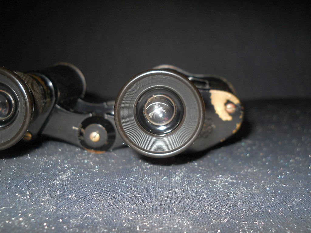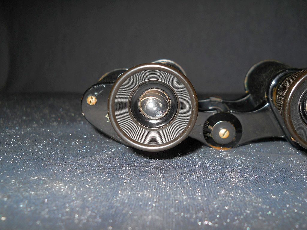 und ausserhalb Der Modellname ist Telfix. Die Seriennummer ist 21523. Das Fernglas wurde in den 20-er Jahren hergestellt. Die Okularringe sind mit Rautenrändelung. Frühere Belegstücke hatten die Die große Rändelschraube zum fixieren vom Augenabstand. Die Durchsicht durch das Fernglas. Breite = 15 cm, Höhe = 10,5 cm, Gewicht = 450 g. Der original Lederköcher.
