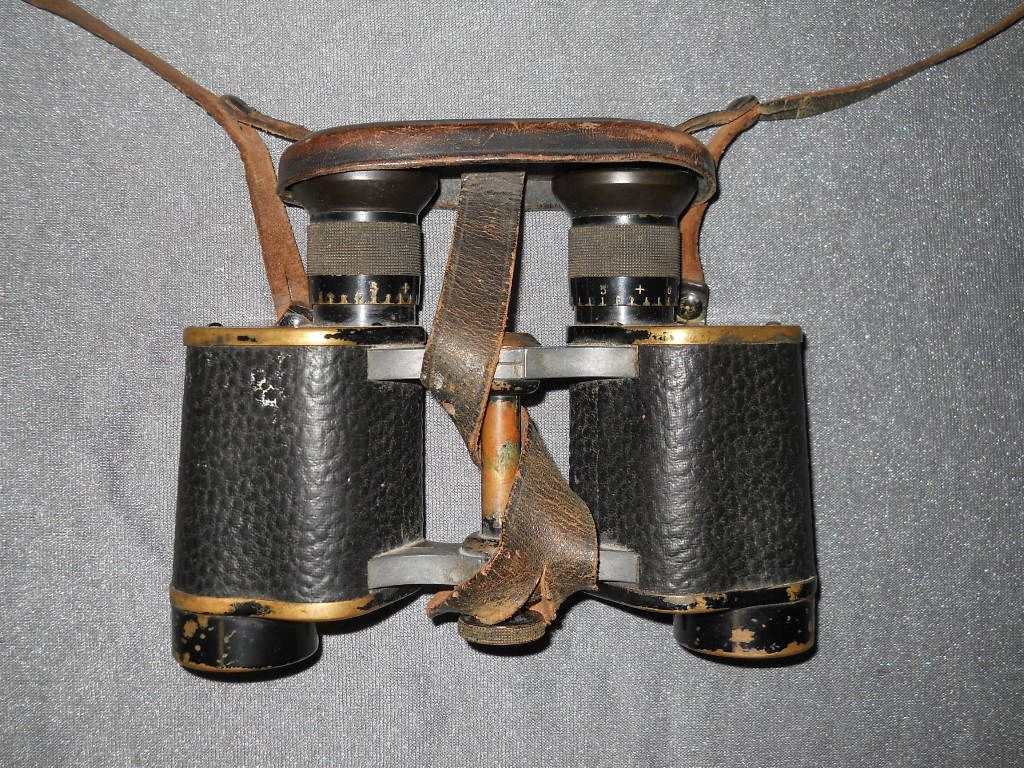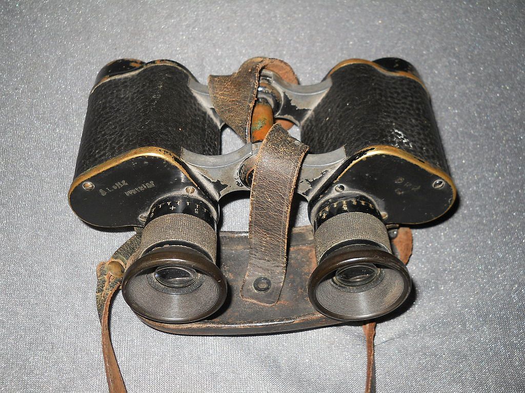 1849 gegründete Ernst Leitz begann erst 1907 mit der Herstellung von Ferngläsern. Die Seriennummern begannen mit 101. Die Firmenaufschrift ist noch ohne Dieses seltene Belegstück von Leitz nennt sich "Binot" und ist das erste Modell Die Kenngröße ist 6x30. 6-fache Vergrößerung mit 30 mm Objektive. D.R.P. steht für "Deutsches Reichspatent". Hinter der Klemmschraube ist die Seriennummer 5480 graviert. Das Die Okulare sind mit früher Kreuzrändelung. Die Klemmschraube zum Fixieren vom Augenabstand. Die Durchsicht durch das Fernglas. Breite = 16 cm, Höhe = 13 cm, Gewicht = 680 g. . . . . . .