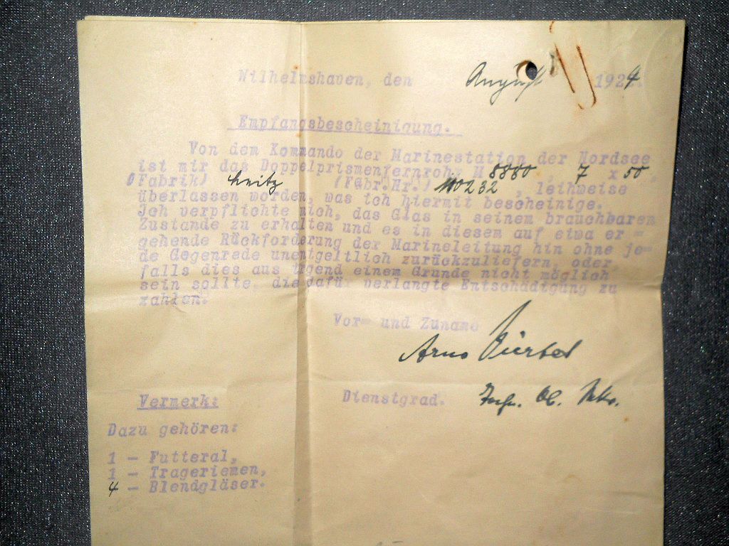 ORIGINAL DOKUMENTIERTES MARINEFERNGLAS LEIHGABE DER MARINESTATION NORDSEE