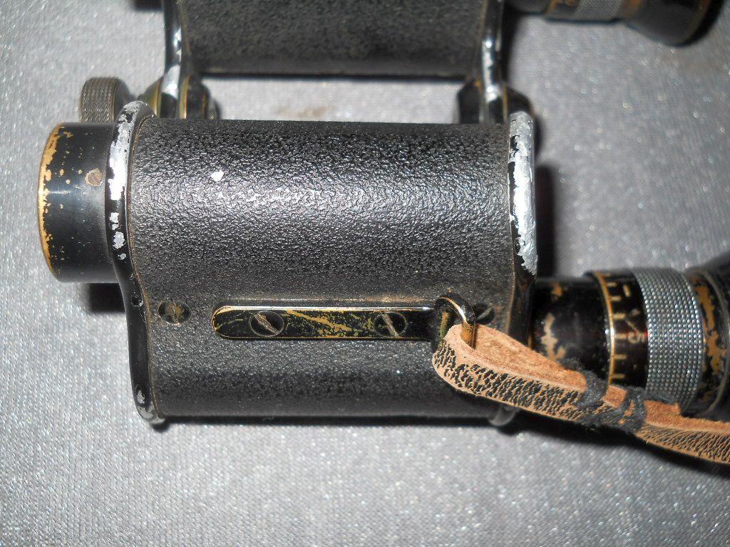 Die frühen Fertigungen haben eine offene Brücke, ohne Brückensteg. Die Okulare sind mit Kreuzrändelung. Die Objektive sind mit kleinem Durchmesser von 18 mm. Die geschraubten Riemenösen. Die Klemmschraube zum Fixieren vom Augenabstand. Die Durchsicht durch das Fernglas. Breite = 10 cm, Höhe = 11 cm, Gewicht = 380 g. . . .
