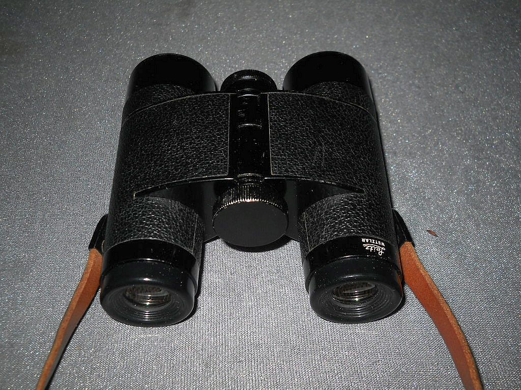 Optik- Jedoch hatte dieses optische System große Nachteile bei der Justierung. Der Das erste Logo der Trinovid Serie mit der Leitz-Signatur. Die Kenngröße ist 8x32. 8-fache Vergrößerung mit 32 mm Objektive. Das Die Seriennummer ist 627243. Die Herstellung ist ungefähr 1963/64. Das Fokussierrad zur Schärfeneinstellung. Der Dioptrienausgleich befindet sich am unteren Ende vom Mittelsteg. Die Durchsicht durch das Fernglas. Breite = 11 cm, Höhe = 11,5 cm, Gewicht = 480 g. Der original Köcher ist mit dem Leitz-Logo geprägt. Er ist innen mit roten Samt ausgelegt. . . . . . . .