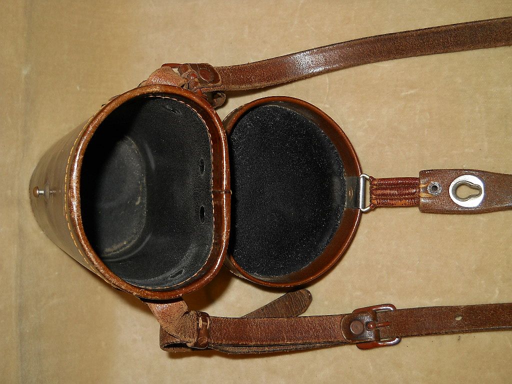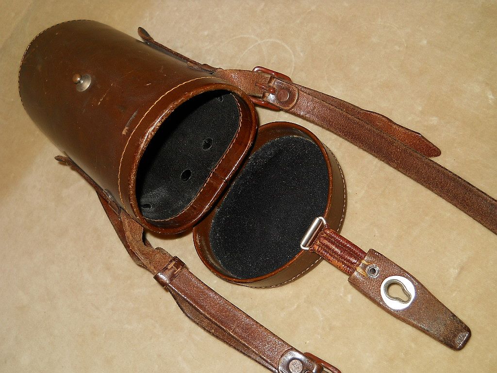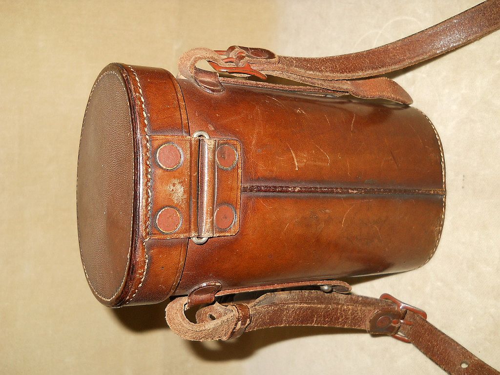 Der Deckel ist oben Es ist 15 cm hoch und wiegt 480 g. Der original zugehörige Lederköcher.