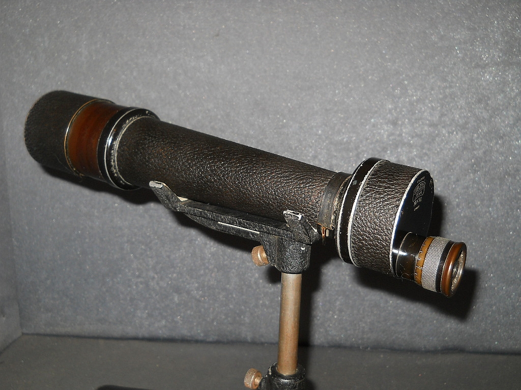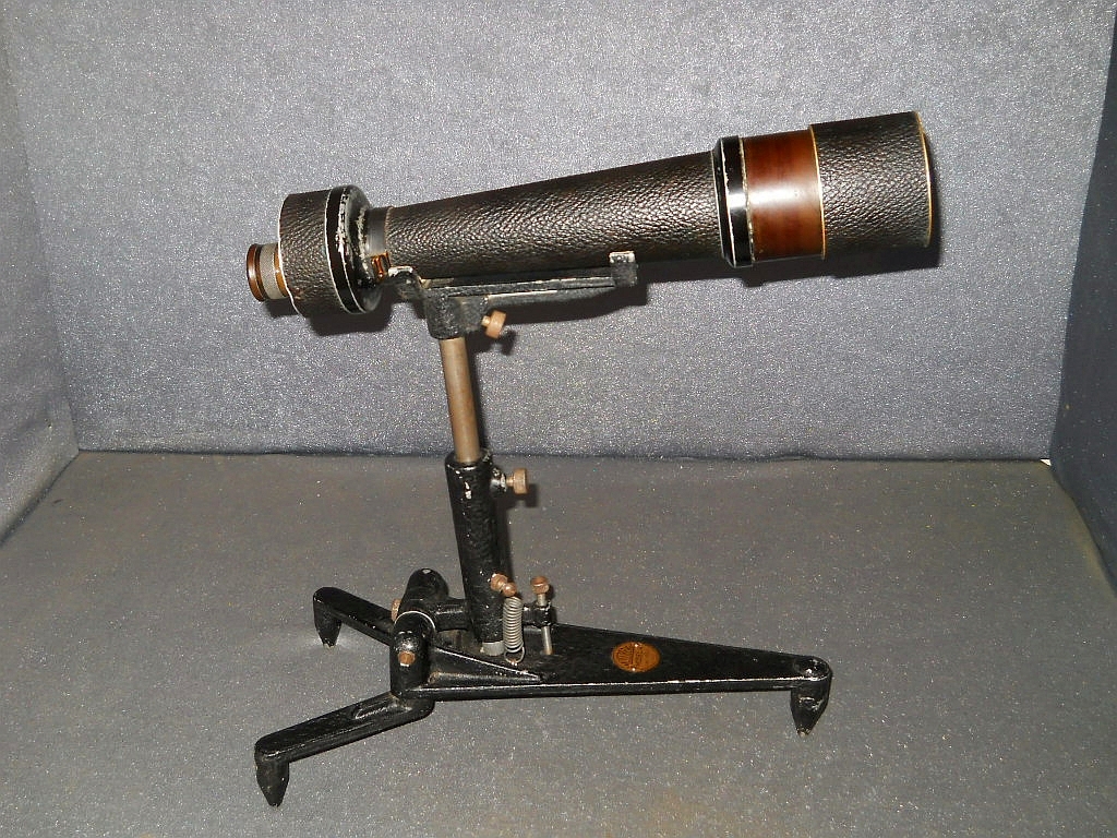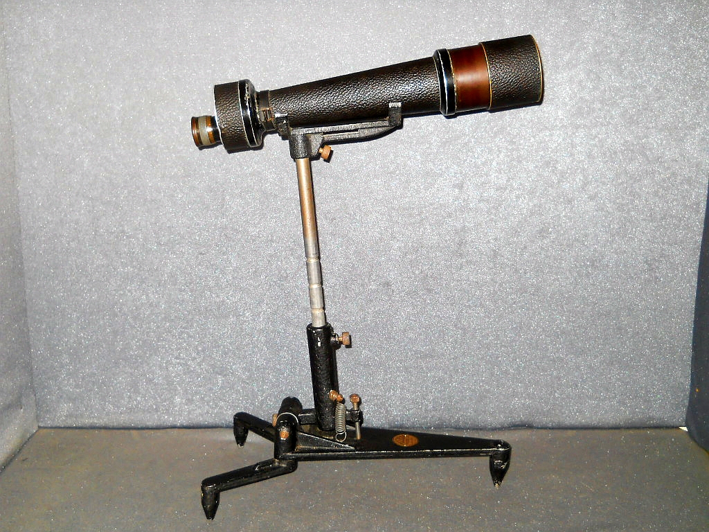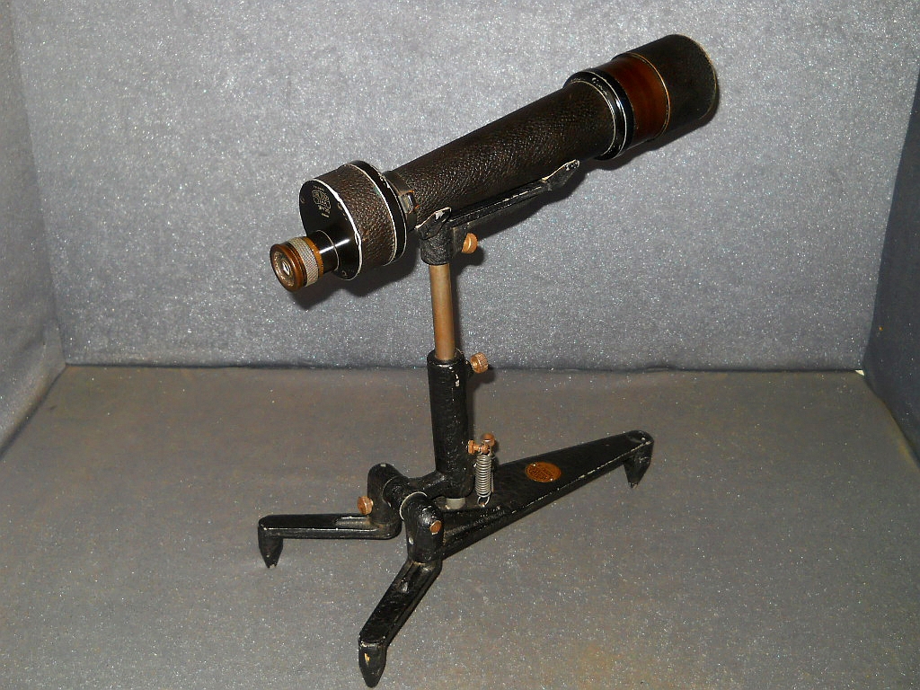 Objektive. Die Die Seriennummer ist 1312993. Es wurde um 1925/26 hergestellt. Das Monokular verfügt über eine flache "Brillenträger Augenmuschel". Die ausziehbare Sonnenblende. Das aufwendig konstruierte Stativ wurde von der amerikanischen