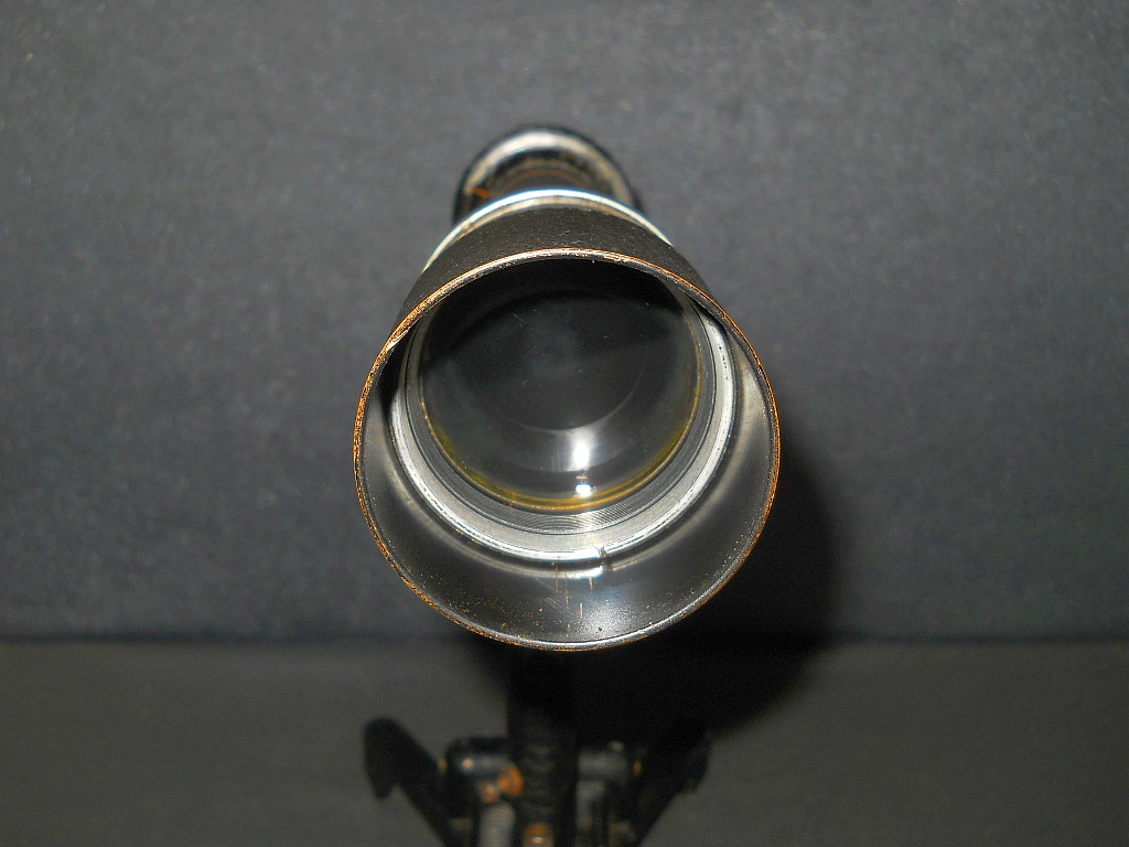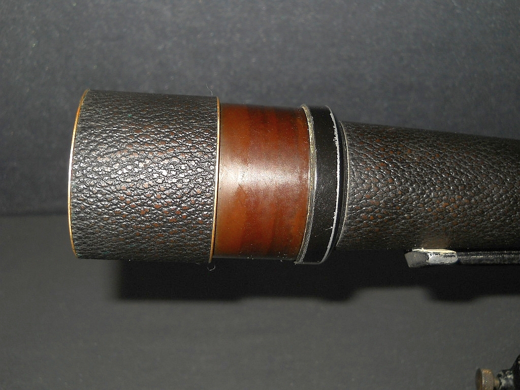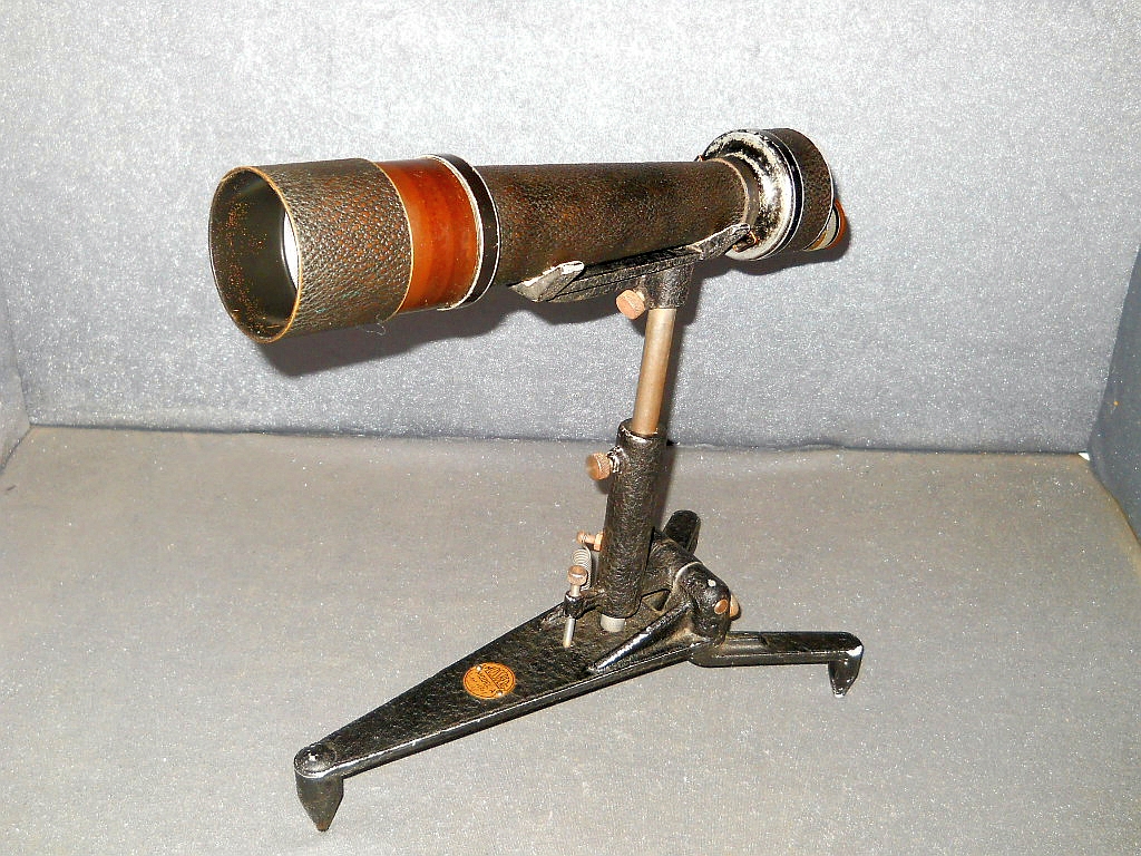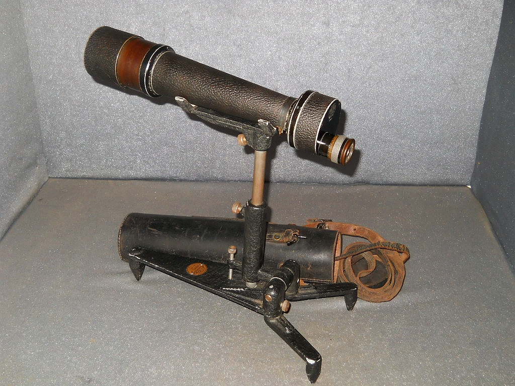 Objektive. Die Die Seriennummer ist 1312993. Es wurde um 1925/26 hergestellt. Das Monokular verfügt über eine flache "Brillenträger Augenmuschel". Die ausziehbare Sonnenblende. Das aufwendig konstruierte Stativ wurde von der amerikanischen