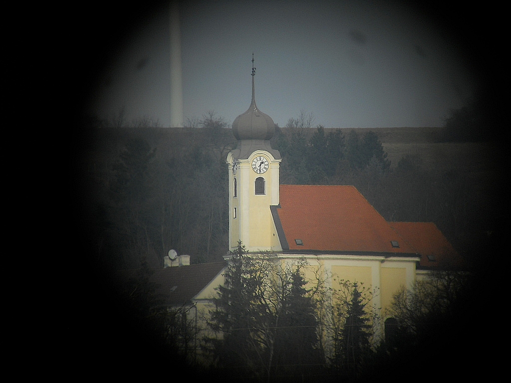 kleines Packmaß Die Durchsicht durch das Monokular. Höhe mit Stativ = 33 cm, Länge = 33 cm, Gewicht = 1360 g.