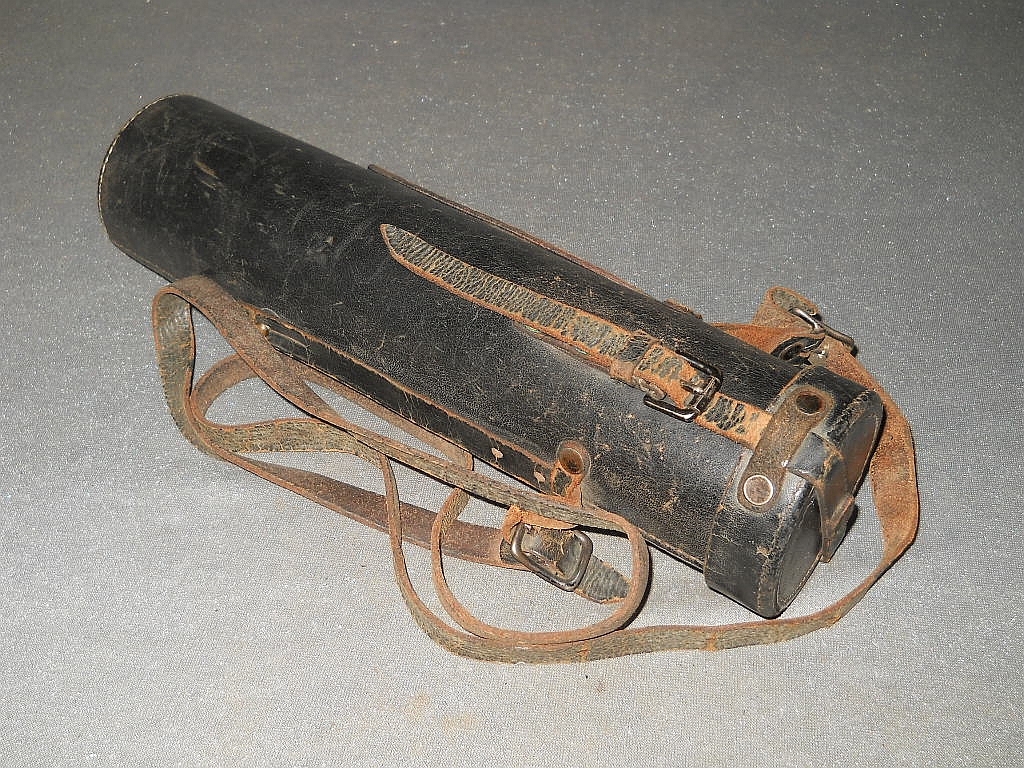 Höhe mit aus- Der original Lederköcher mit Riemen.