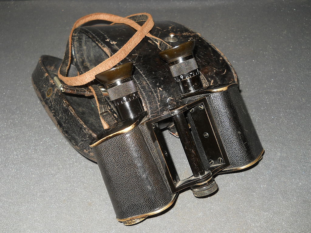 SELTENES MILITÄRFERNGLAS WK I "BENT SHOULDERS" mit original Köcher und Riemen! Von 1895 bis 1907 wurden im Zeisswerk militärische und