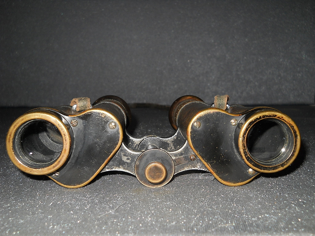 angegossener Brücke hergestellt, Dieses Fernglas ist ein seltenes Belegstück aus der Erstserie von 1907. Es hat die typischen Merkmale der ersten Ferngläser der neueren Bauart. Das sind Einstückdeckel und die typischen