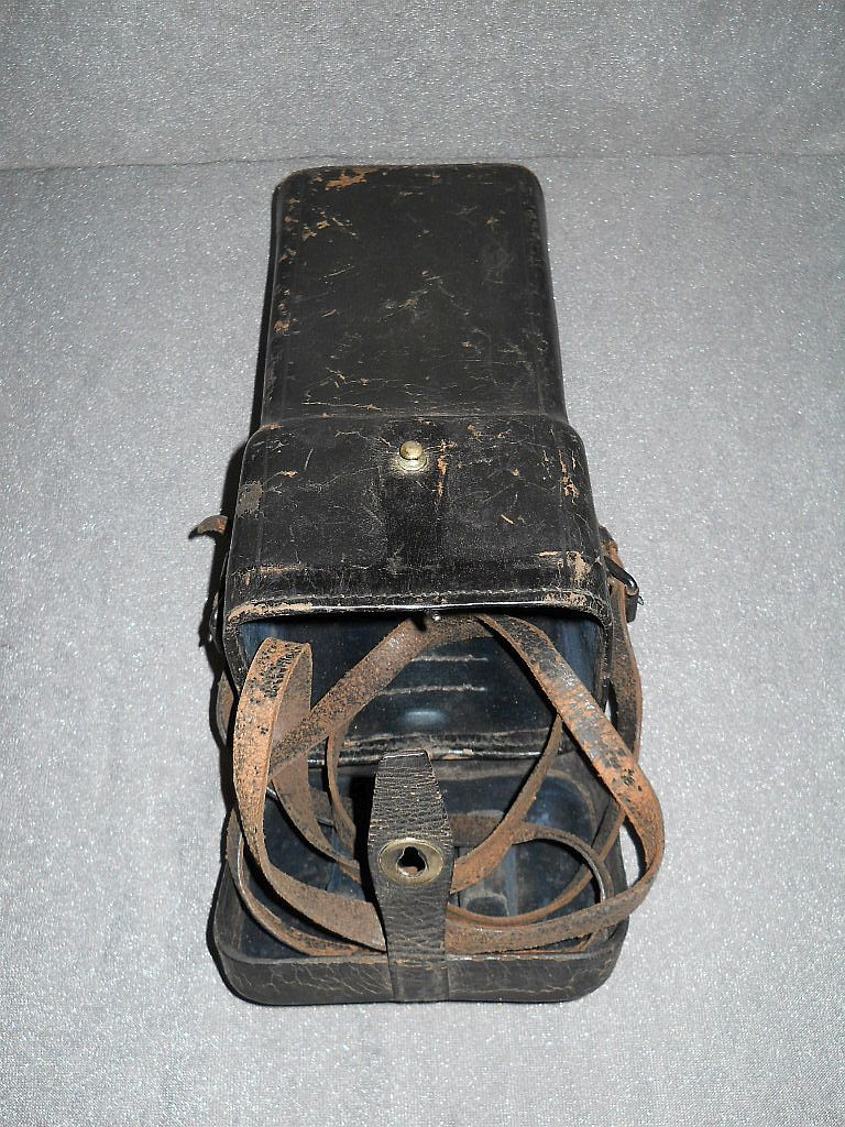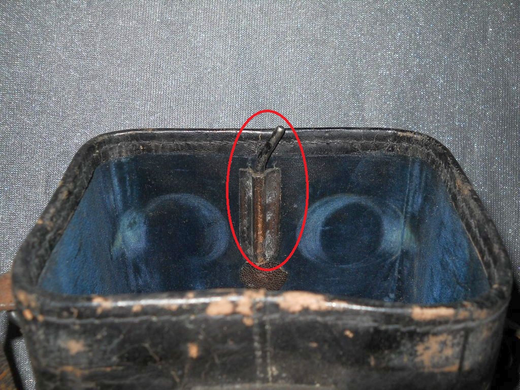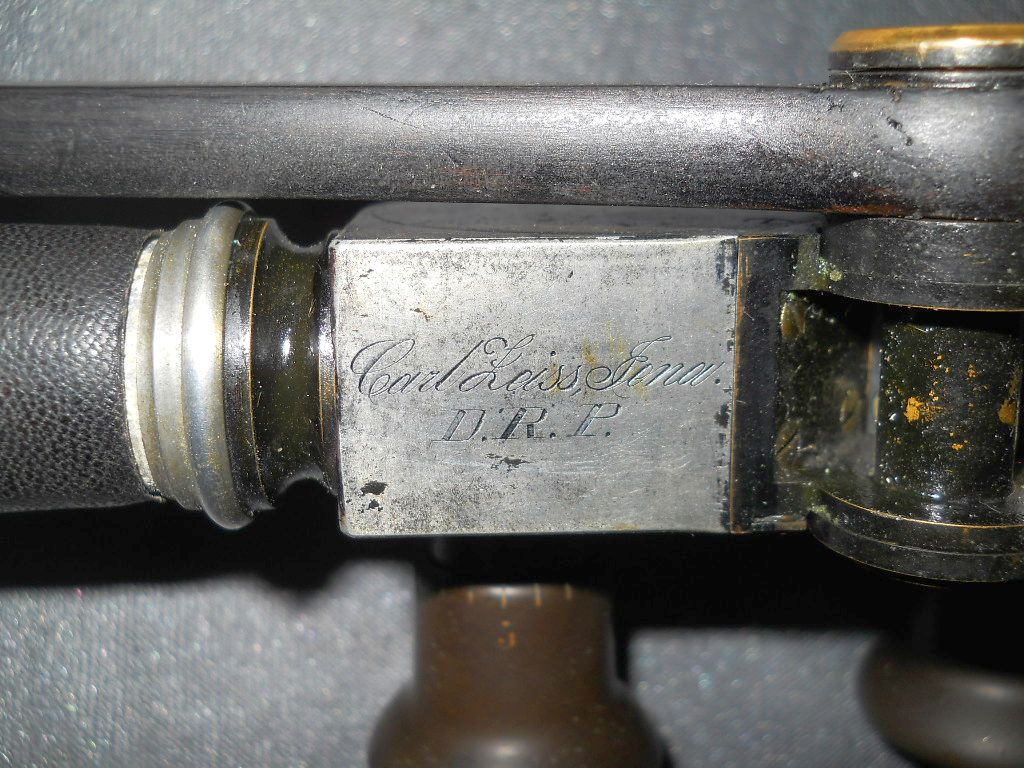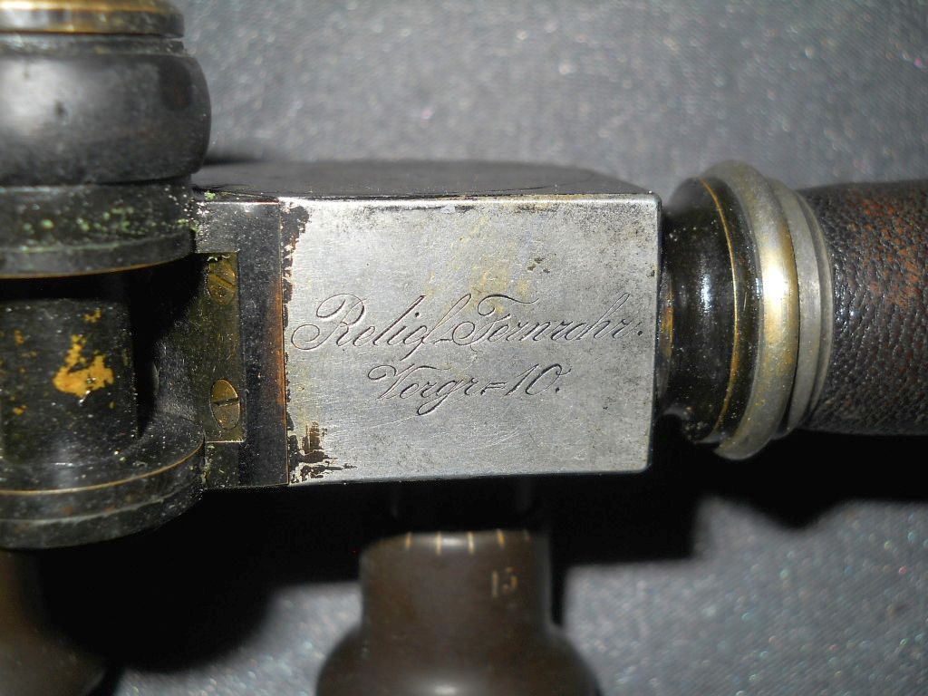 = 45 cm, Noch seltener als das Relieffernrohr ist der original Tranportköcher. Er ist innen mit blauen Samt ausgelegt. Komplett mit dem gebogenen Stahlstift zur Einstellung!