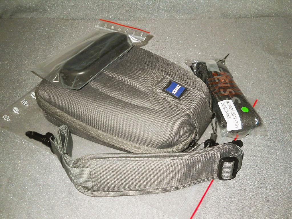 Fernglasriemen und Okularschutzkappe sind noch original verpackt.