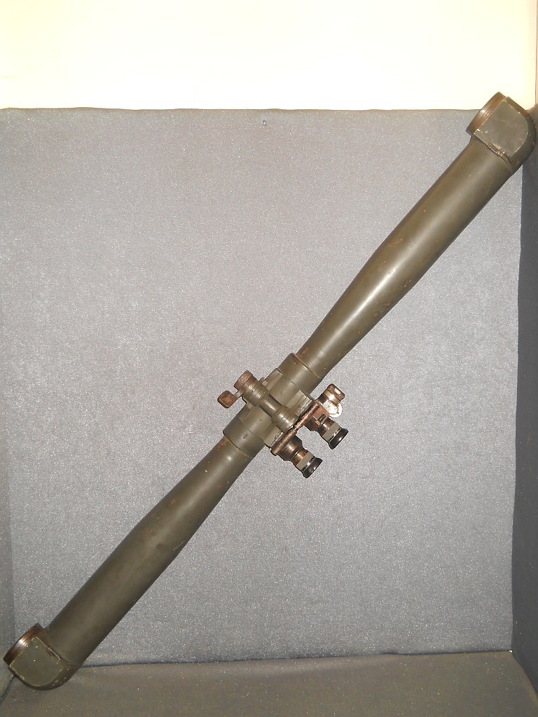 Scherenfernrohr Die Geländemesswinkellibelle mit Stellrad für artilleristische Berechnungen. Die rechte Durchsicht mit Strichplatte. Die linke Durchsicht. Die Strichplatte im Detail. Breite = 18 cm, Höhe = 62 cm, Gewicht = 5500 g.