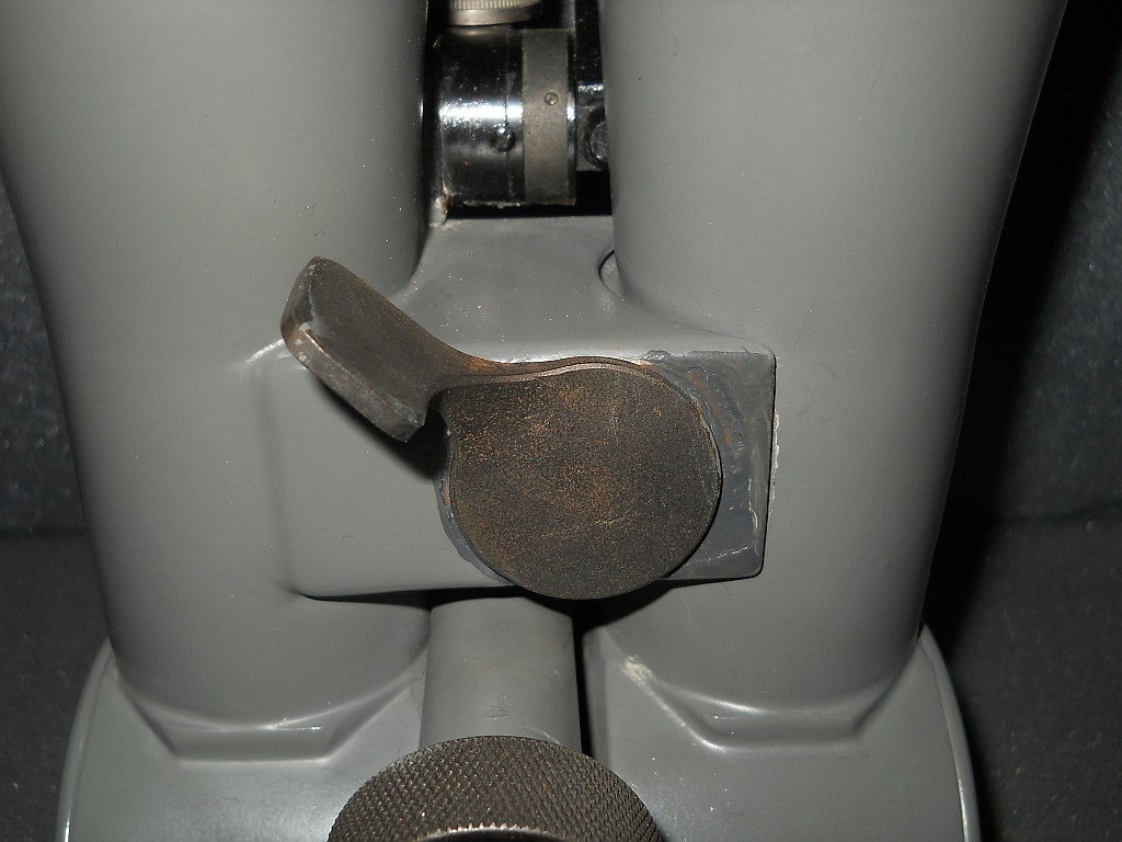 mit dem Sichtfenster Die Geländemesswinkelvorrichtung für artilleristische Berechnungen. Oberhalb Dieser Hebel verbindet zwei Funktionen. Zum Einen ist durch