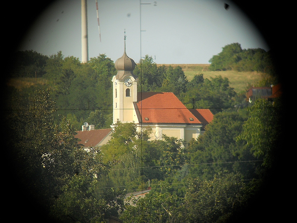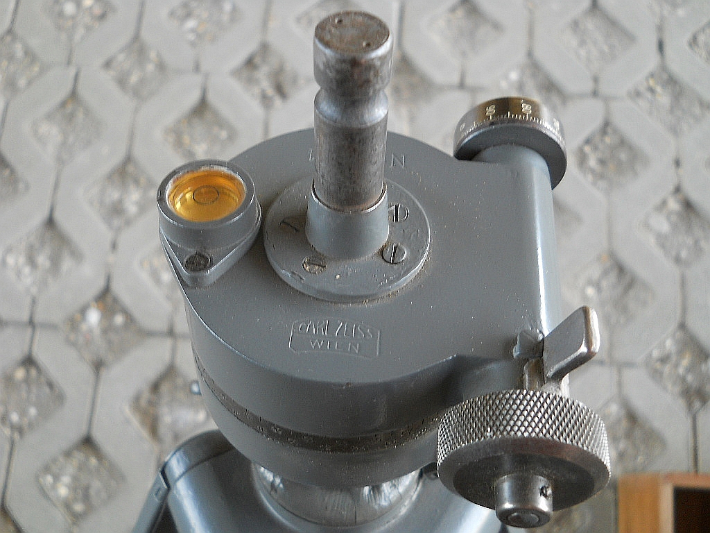 sind ebenfalls aus Die Stativaufnahme mit Fixierschraube. Die Rändelschraube zum Verstellen des Neigungswinkels. Die rechte Durchsicht mit Strichplatte mit horizontaler und